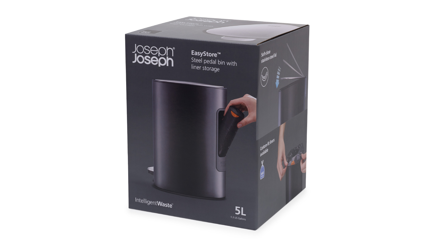 Joseph Joseph EasyStore Pedal Rubbish Bin with Bin Liner Storage 5L - Matte Black