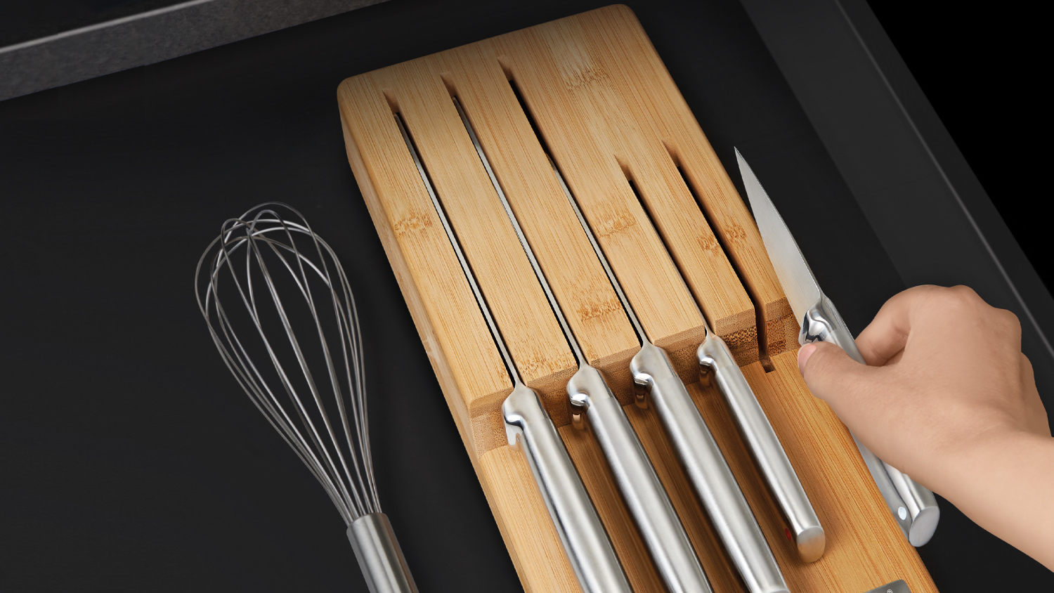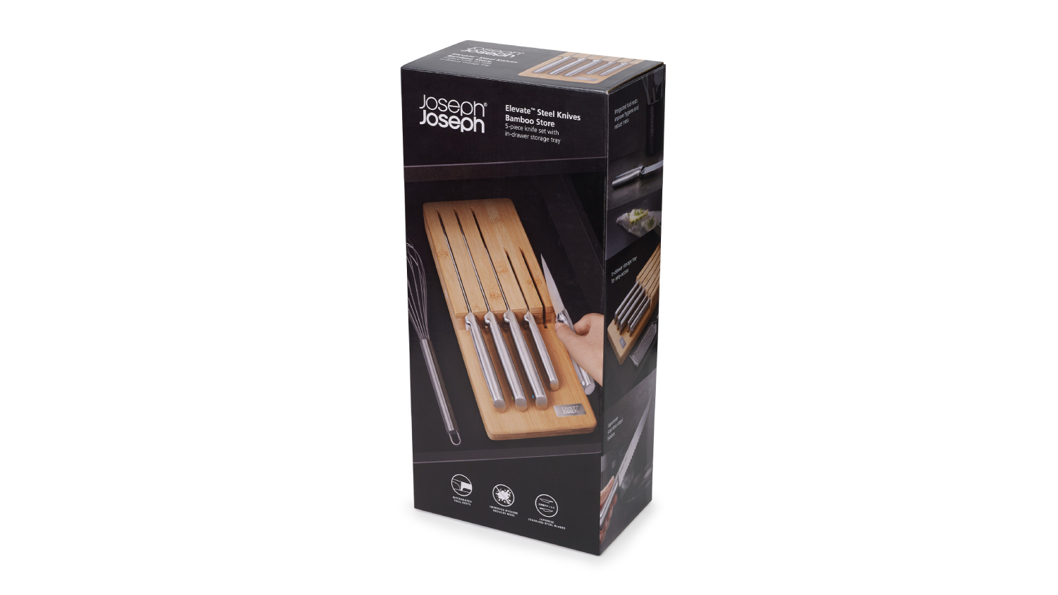 Joseph Joseph "Elevate" Stainless Steel Knife Set with Bamboo Drawer Storage 5pcs.