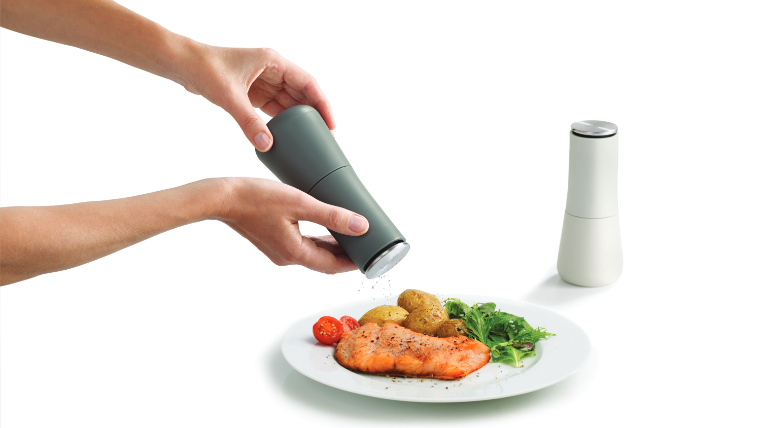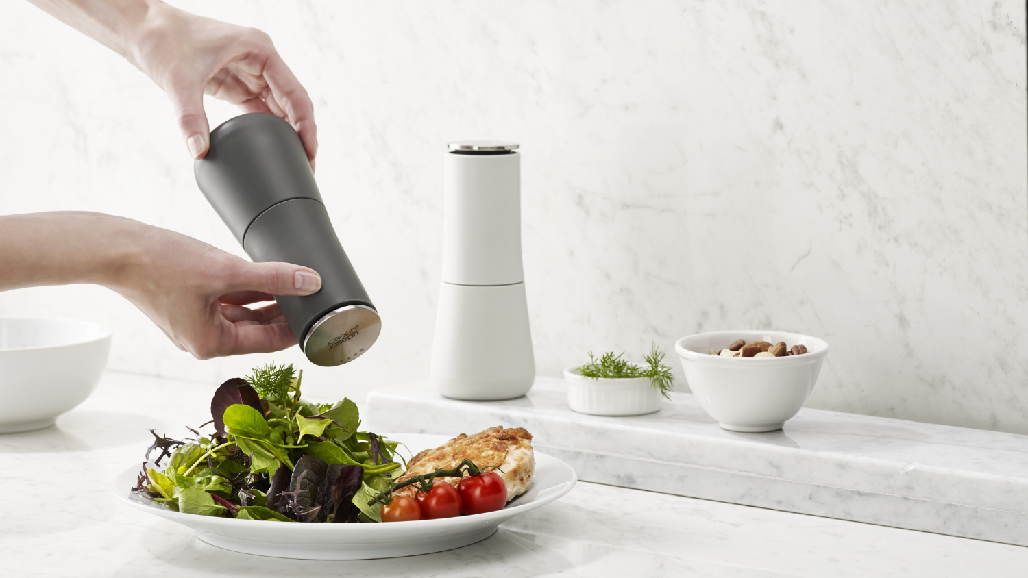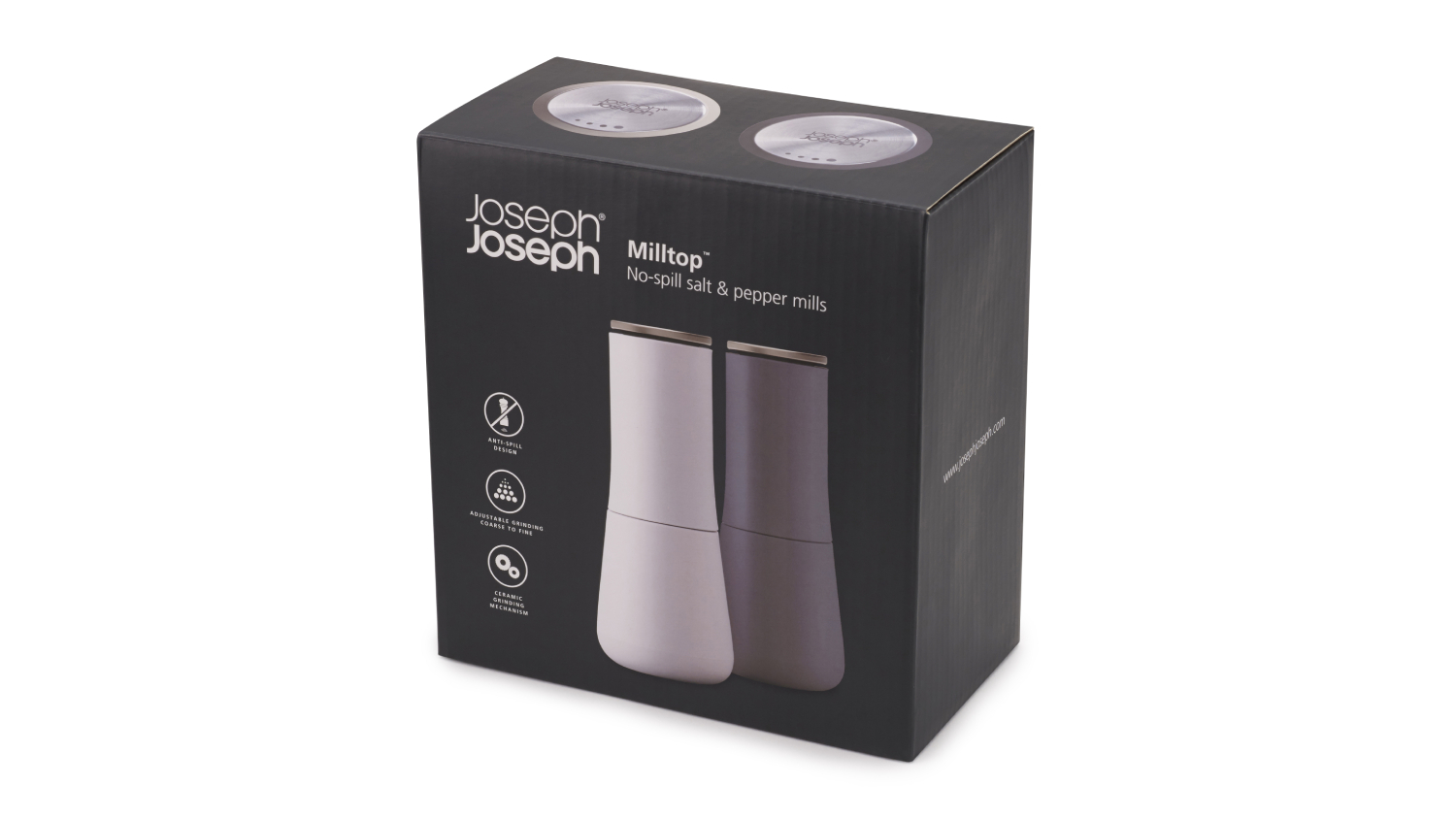 Joseph Joseph Milltop Modern Tidy Matching Salt & Pepper Grinders - Black/White