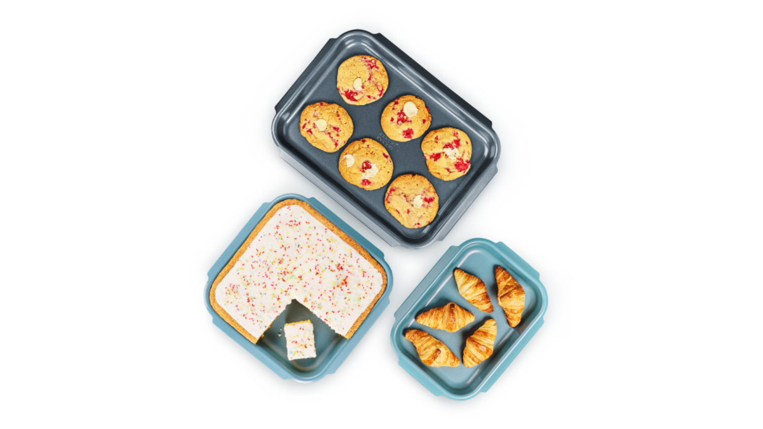 The Joseph Joseph Nest Baking Tray Set is stylish, practical, and perfect for any home baker! Featuring a clever stacking design, these trays are made from durable carbon steel and finished with a high-quality non-stick coating for easy food release. Their easy-pull handles give you a secure grip, making it safer to move them in and out of the oven.