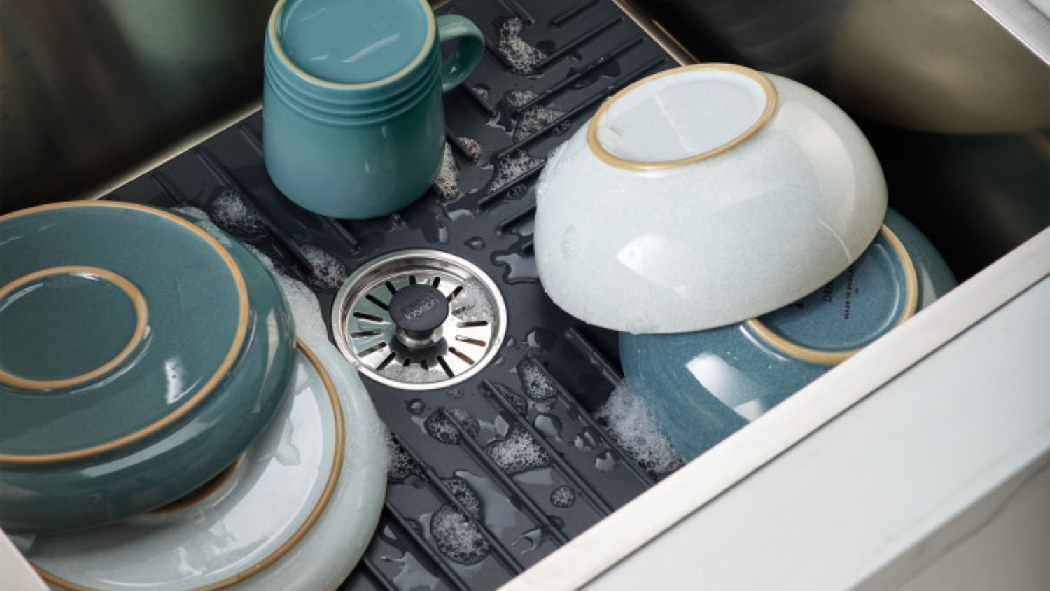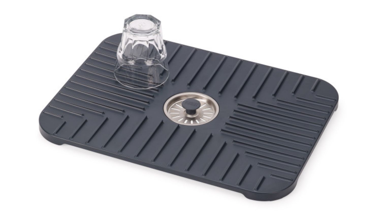 Keep your sink looking spotless with the Joseph Joseph SinkShields Sink Protector! Designed to prevent chips and scratches, this clever product protects both your sink and delicate items like glasses and tableware. Its raised, grooved surface and non-slip feet allow water to drain efficiently, while the removable plug catches food debris for easy cleanup.
