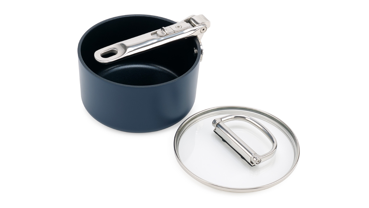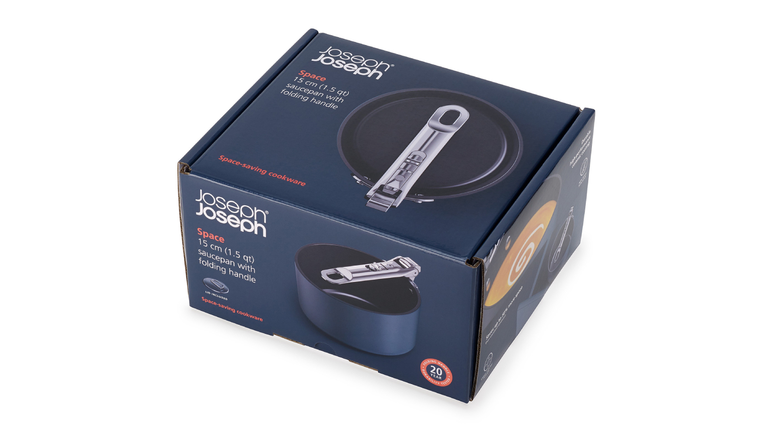 Joseph Joseph "Space" Non-Stick Saucepan with Lid, Fold-Away Handle 15cm - Navy