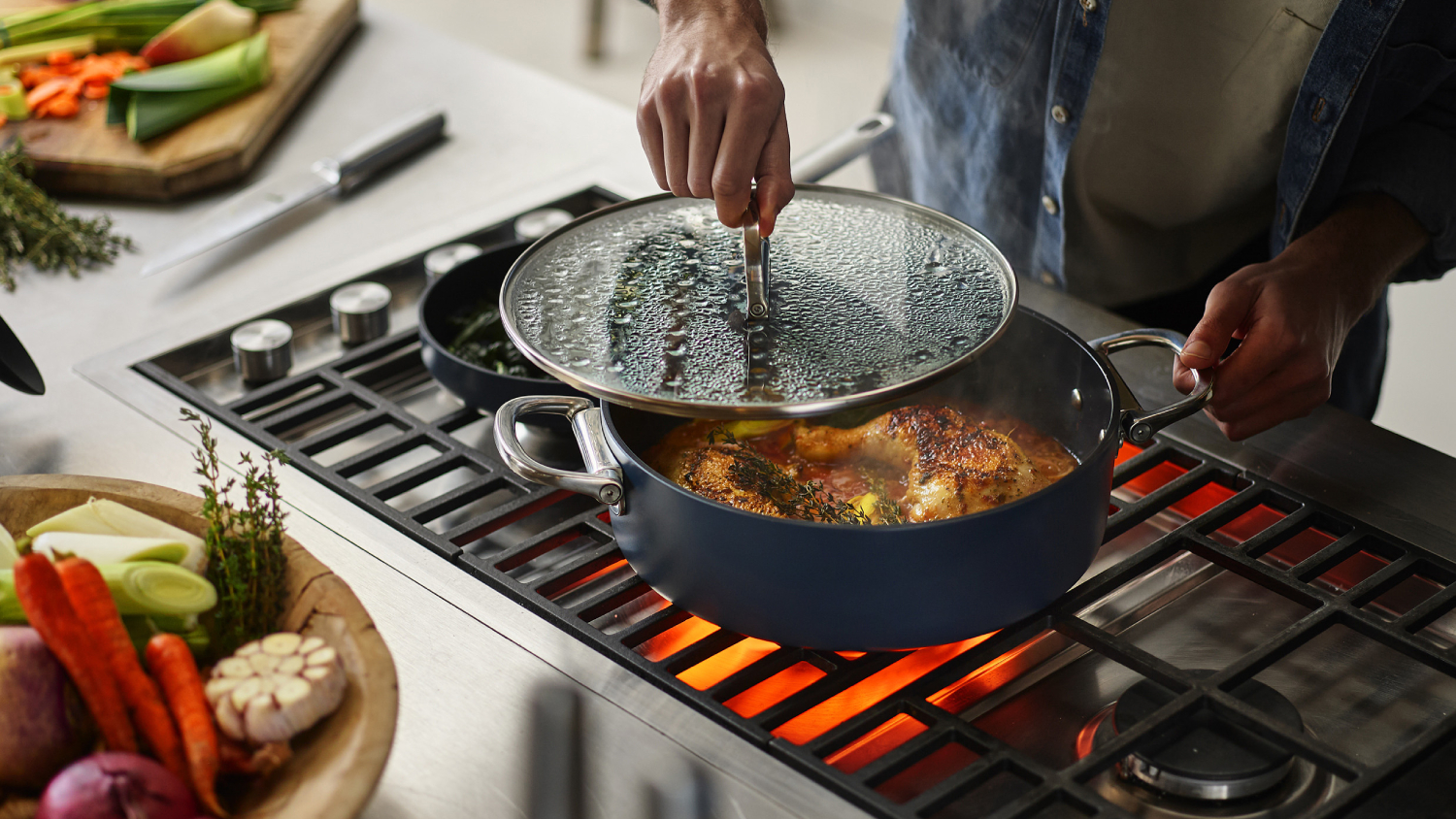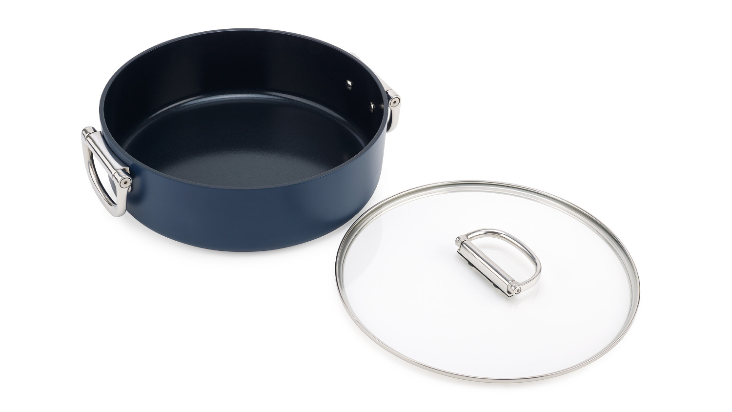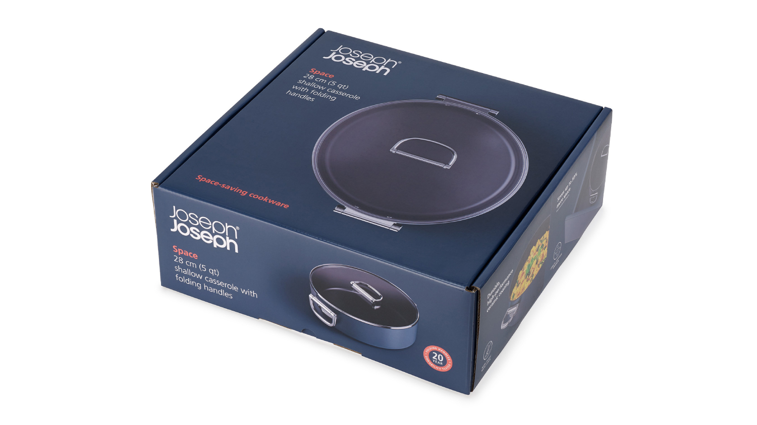 Prepare meals effortlessly with the Joseph Joseph "Space" Non-Stick Shallow Casserole Dish with Lid, Fold-Away Handles 28cm! This cookware features a ceramic non-stick coating and heavy-gauge aluminium body, offering the perfect balance of convenience, durability, and superior heat distribution. Its fold-away handle also saves space, making it ideal for compact kitchens. This pan is also compatible with all hob types, including induction.