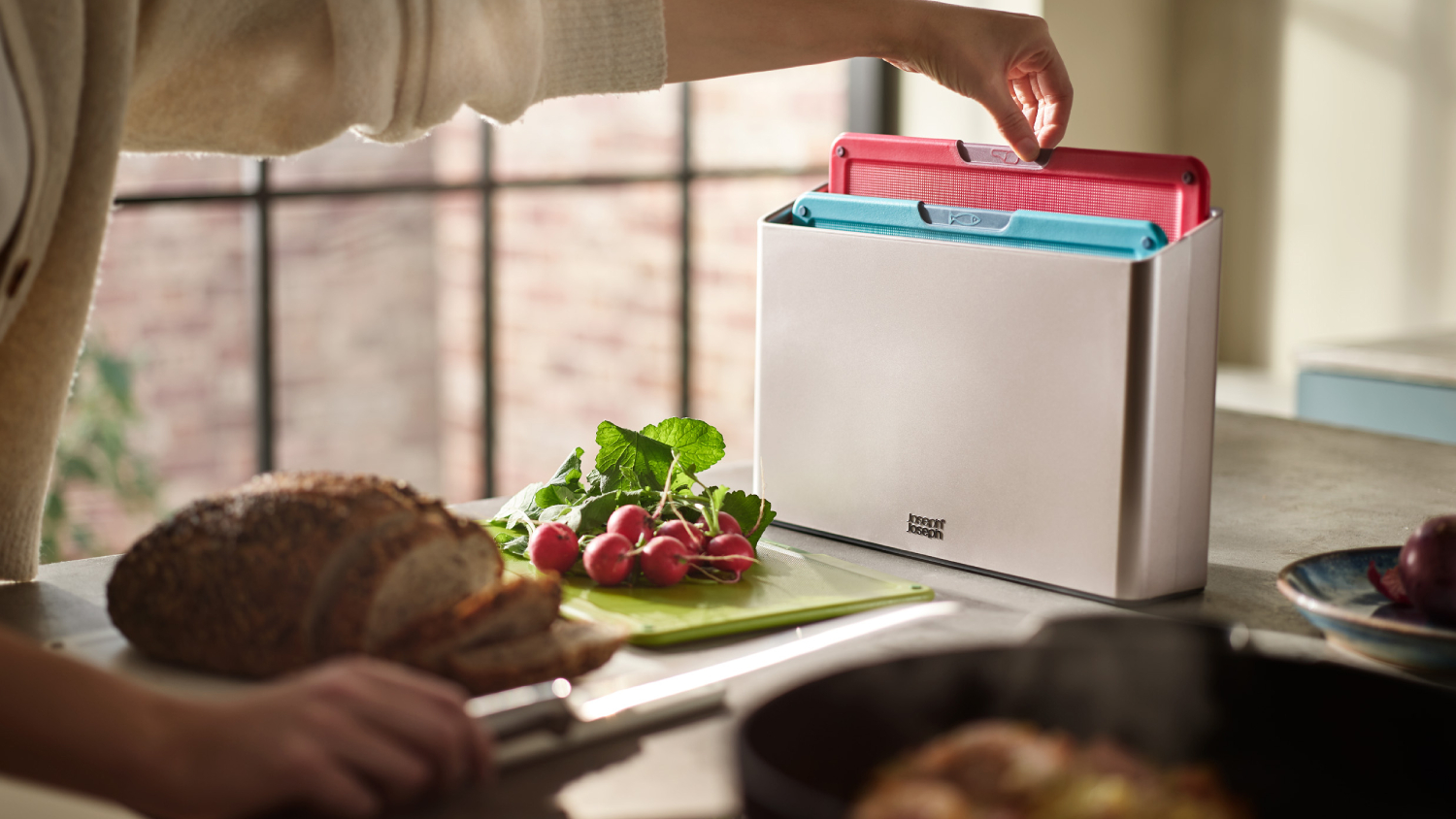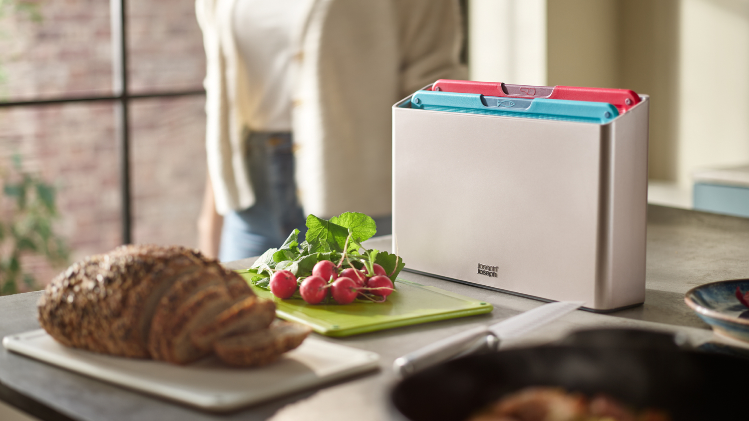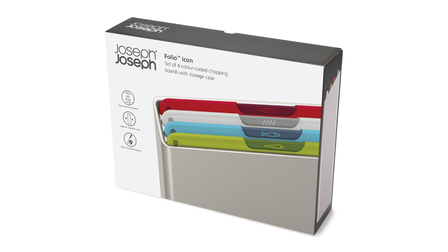 Keep your kitchen organised and your food prep hygienic with the Joseph Joseph Stainless Steel Chopping Board Folio 20 x 30 cm. This innovative set includes four food-specific colour-coded chopping boards that are perfect for handling raw meats, vegetables, fish, and cooked foods separately, helping prevent cross-contamination. Each board also features non-slip feet and a knife-friendly, textured cutting surface.