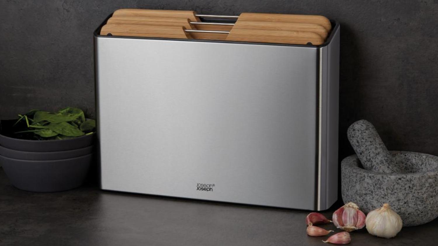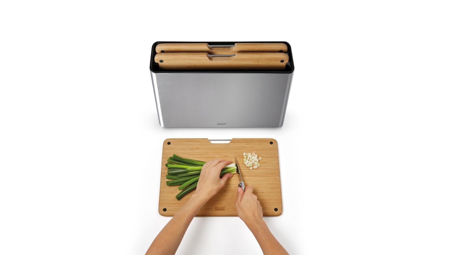 Upgrade your food prep experience with the Joseph Joseph Stainless Steel Chopping Board Folio. This set includes three boards designed to handle all your chopping and dicing needs. Each board also features non-slip feet and tough bamboo surfaces for the ultimate convenience in the kitchen.