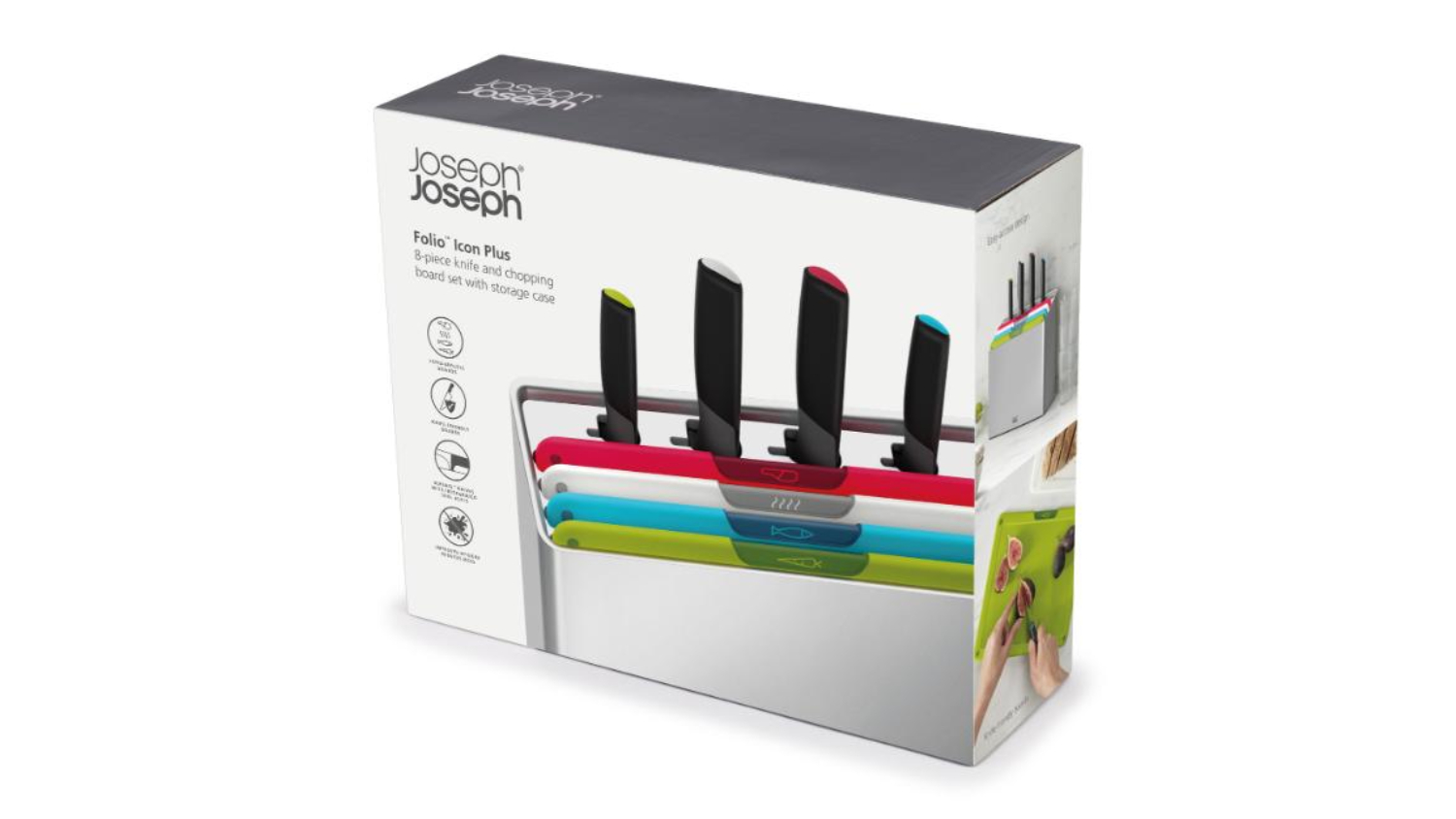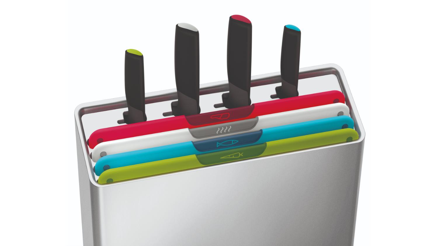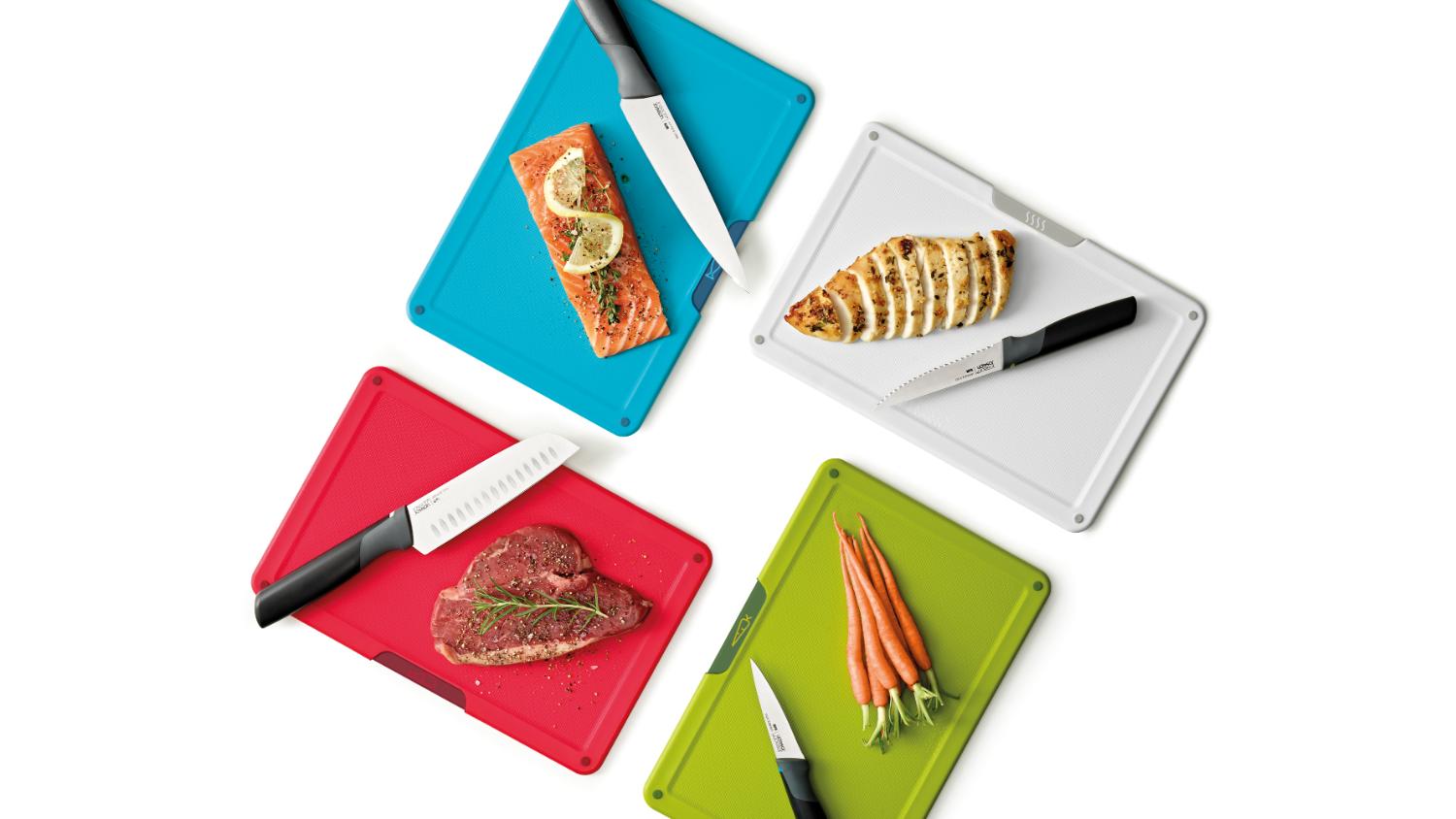 Joseph Joseph Stainless Steel Chopping Board Folio with Stainless Steel Knife Set 4pcs. - Colour-Coded