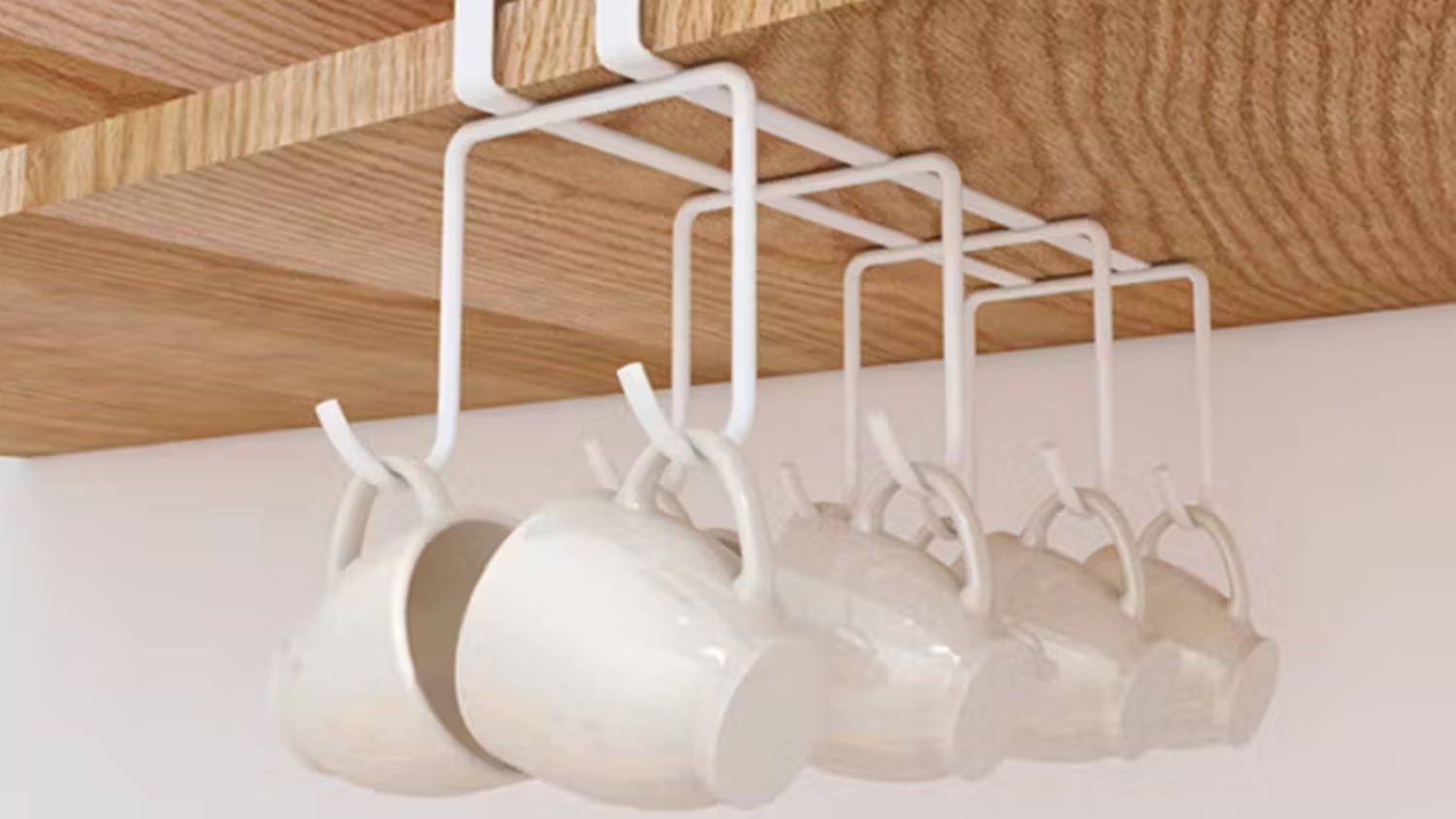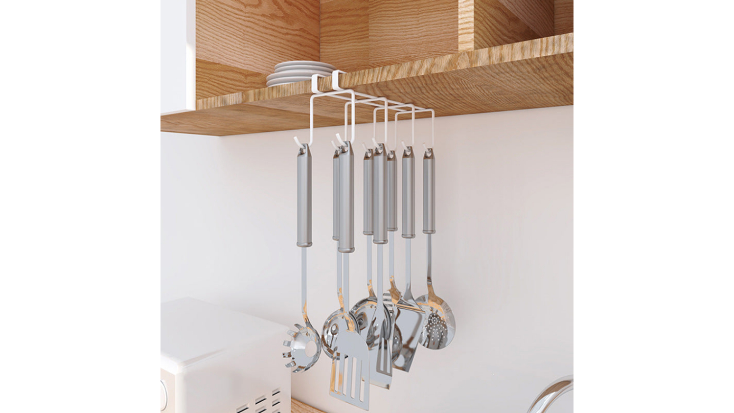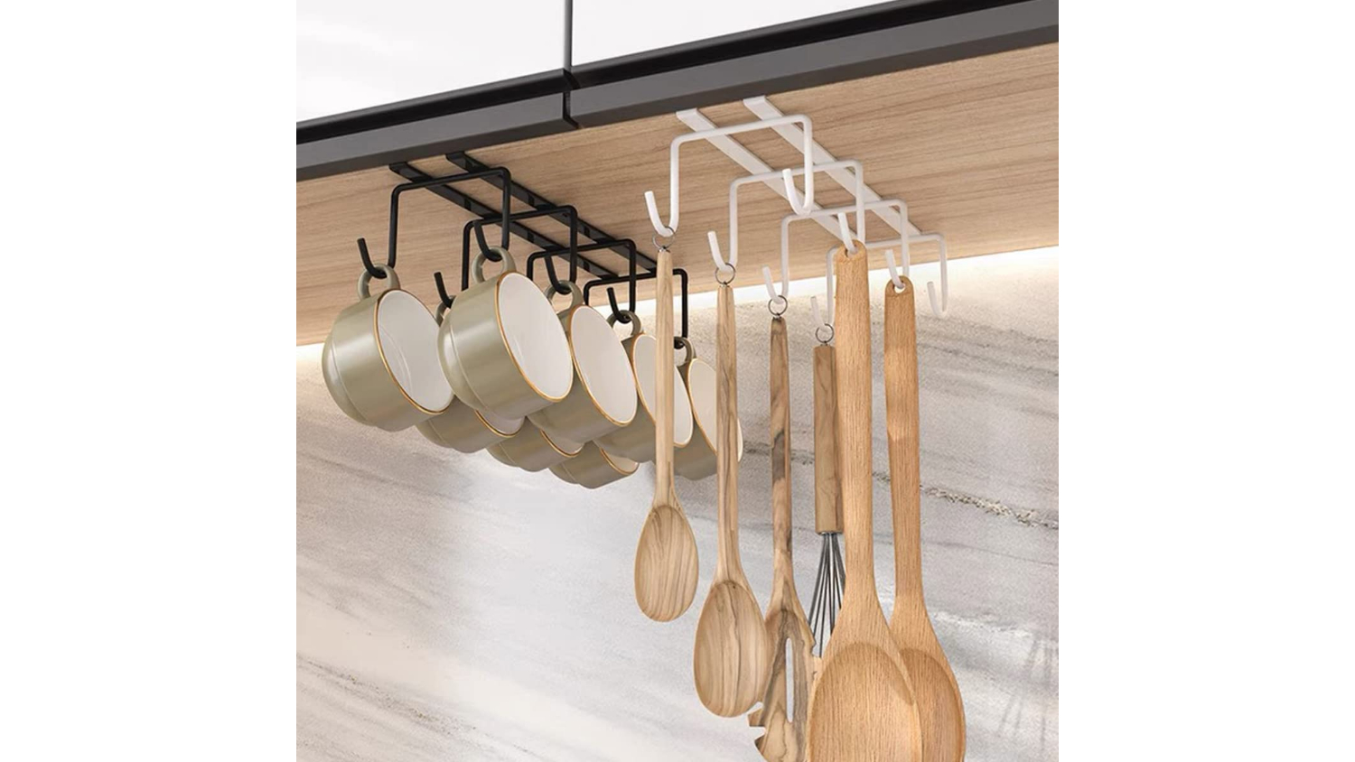 Simplify kitchen organisation with the Kmall Shelf-Mountable Hanging Hook Rack 2pcs, a versatile solution for tidying up your space. Crafted from anti-rust iron, each rack securely holds mugs and utensils, expanding cupboard space with its convenient design. Simply slide it over cabinets or shelves for instant organisation without the need for drilling, offering both practicality and style.