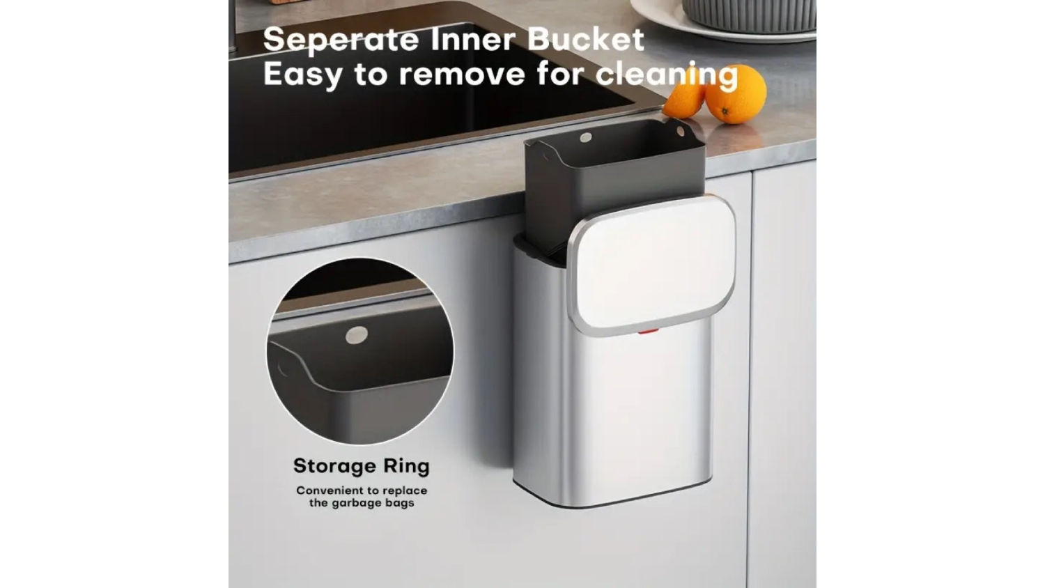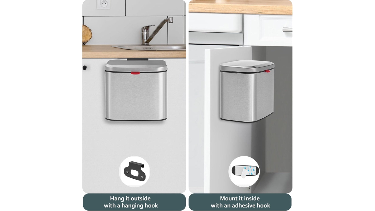 Keep your cooking area clean and stylish with the Kmall Cabinet Door Mountable Kitchen Waste Bin. This unit features a sleek enamel-coated carbon steel outer and an 8-litre capacity, complete with dual lid options (slide or flip-top). Its magnetic 360° seal keeps odours locked in, and the innovative double-bin system ensures fast, easy liner replacement. Save floor space by installing it instantly using one of the two included mounting hooks.