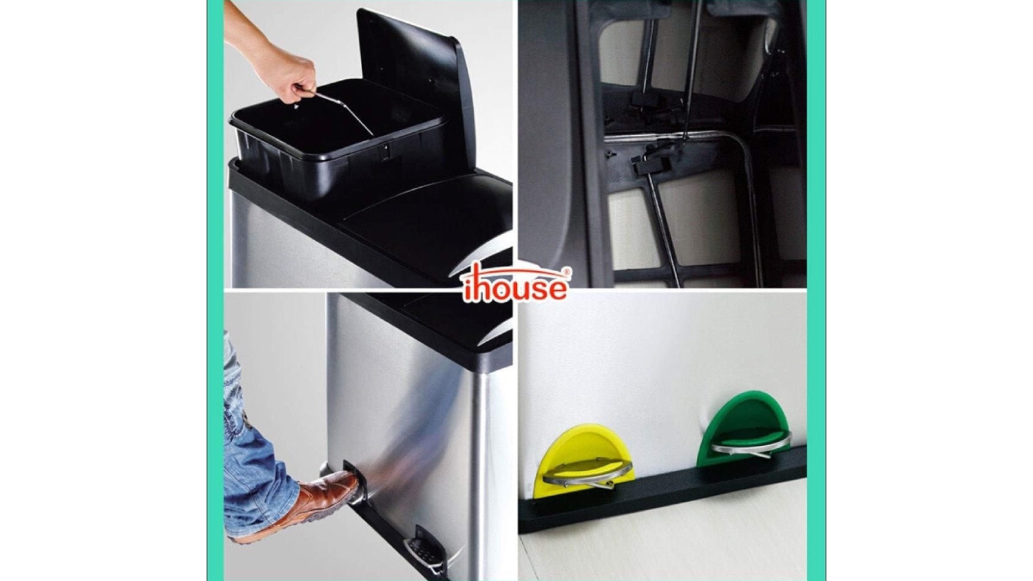 Simplify waste management with the Kmall Dual Compartment Kitchen Waste Bin 30L. This sleek unit is built from premium 410 stainless steel and features two 15-litre inner bins, perfect for separating general rubbish and recyclables. Operation is hygienic and hands-free thanks to the two sturdy foot pedals. Its compact design is ideal for any kitchen or office, while the anti-slip base and removable bins ensure stability and quick, easy cleaning.