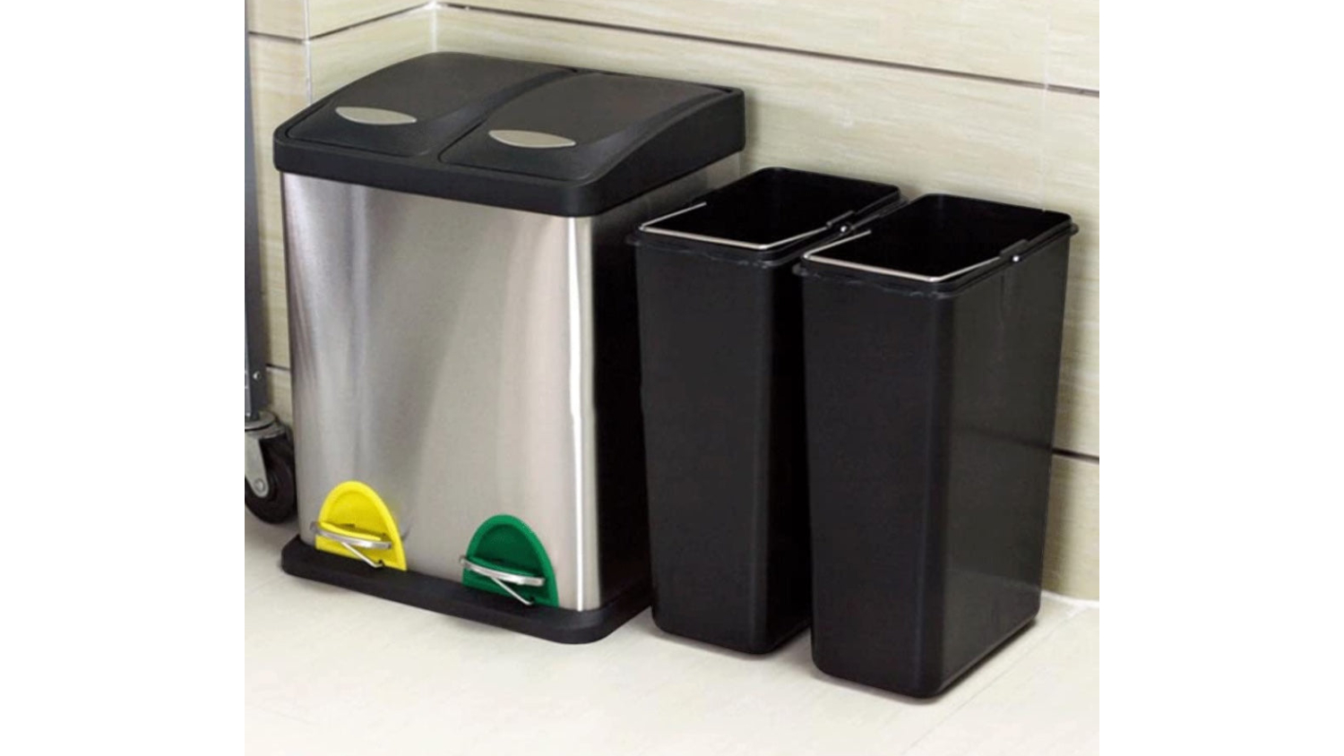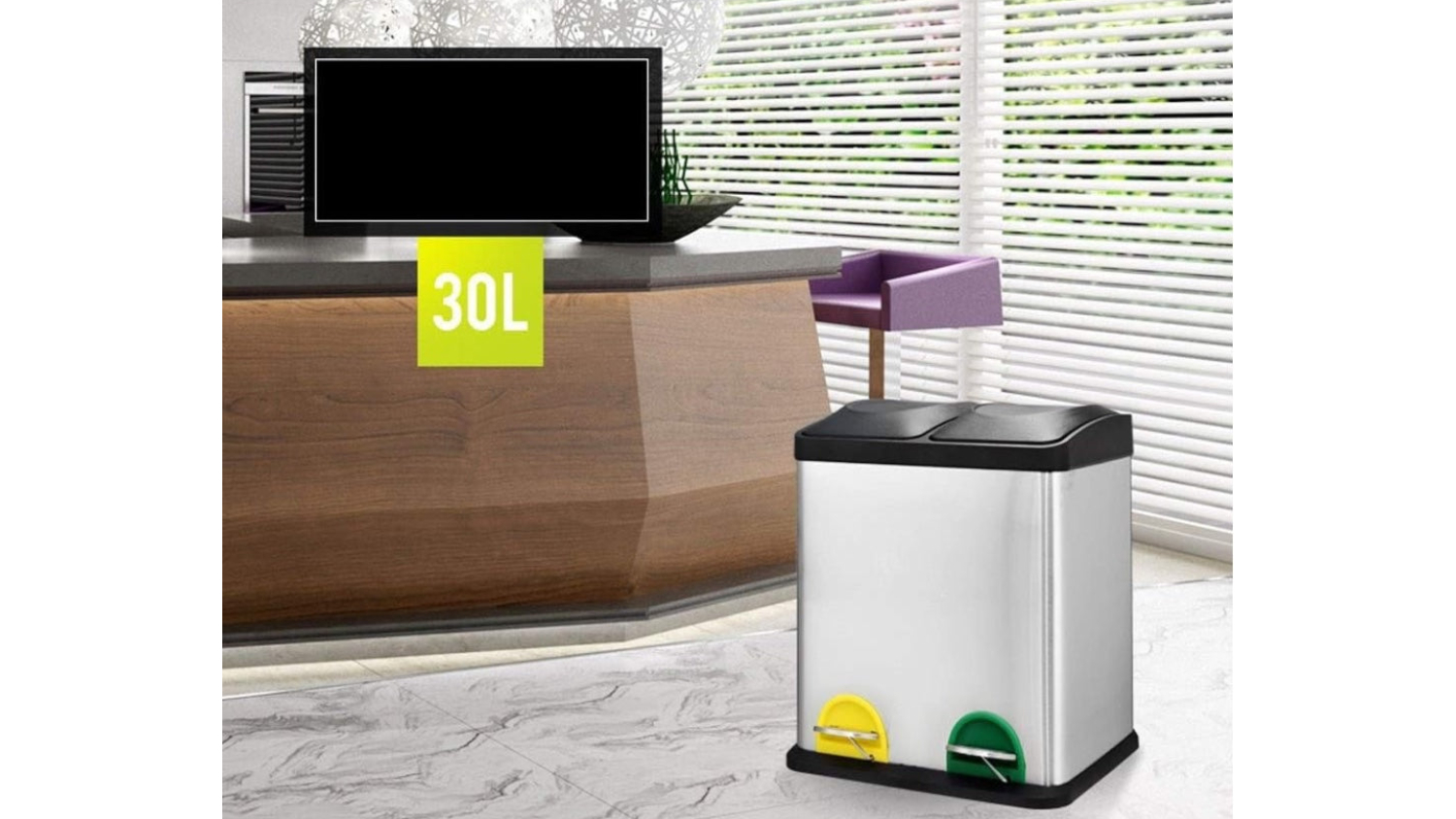 Kmall Dual Compartment Kitchen Waste Bin 30L - Stainless Steel