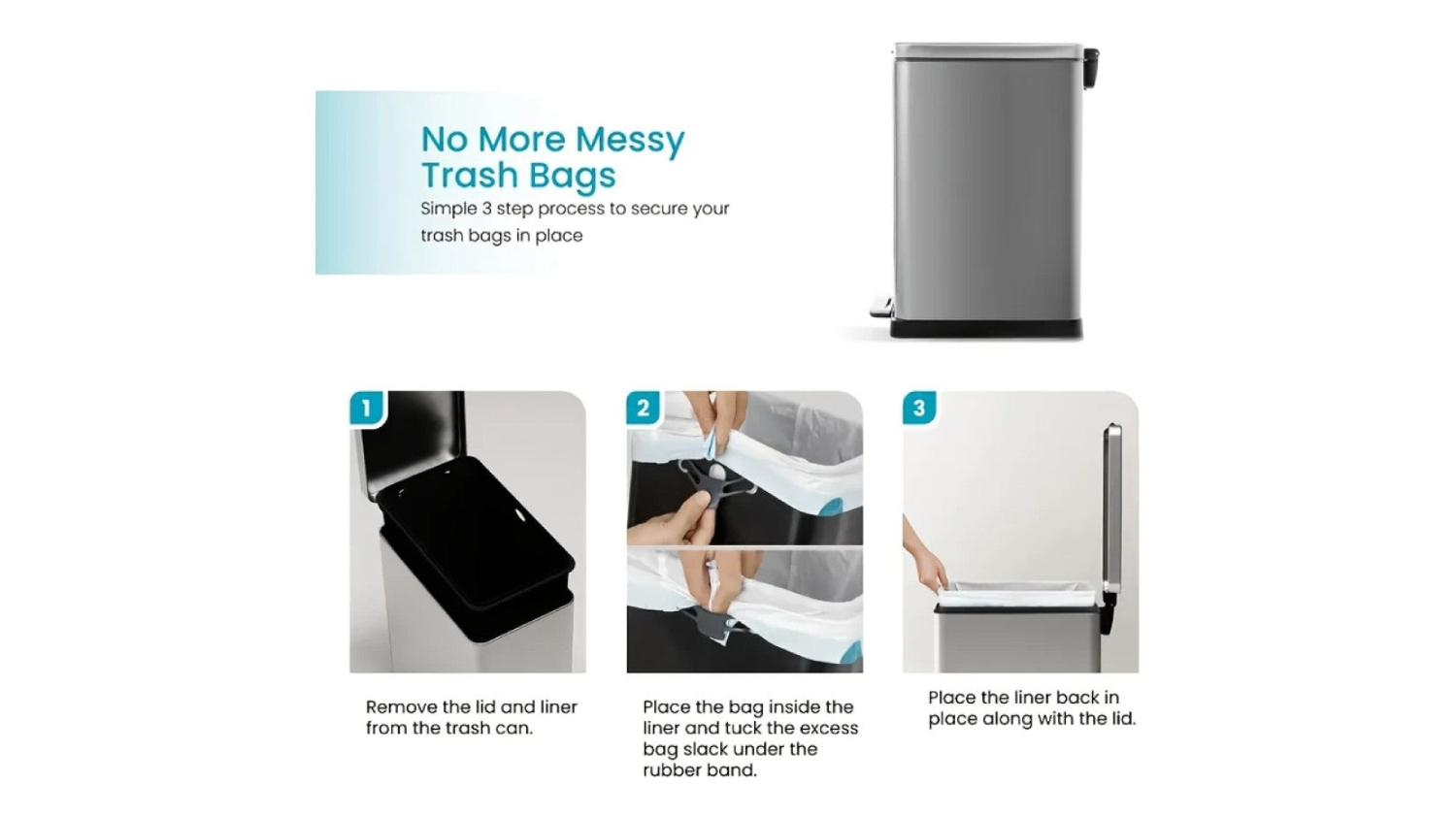 Keep your space tidy and sanitary with the Kmall Slim Kitchen Waste Bin 10L. This sleek, space-saving trash can slips neatly into tight spots in any room. Built from premium stainless steel, it resists rust and stains for a sanitary, odour-controlled environment. A durable pedal allows for effortless opening, and a handy 90° stay-open function adds convenience. Plus, the inner design keeps your trash bags secure without slipping.
