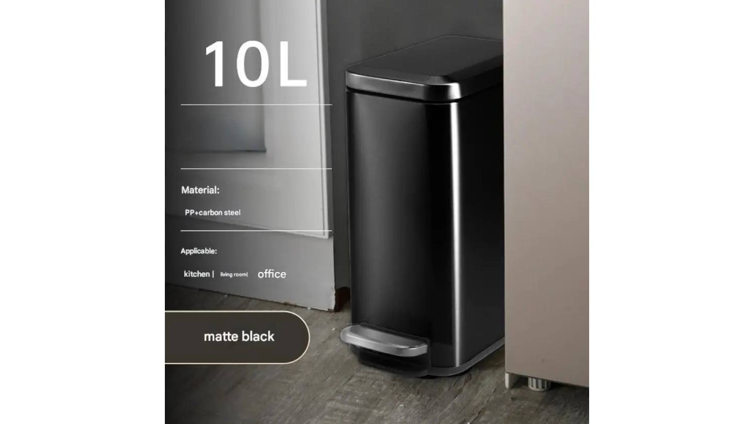 Kmall Slim Kitchen Waste Bin 10L - Black