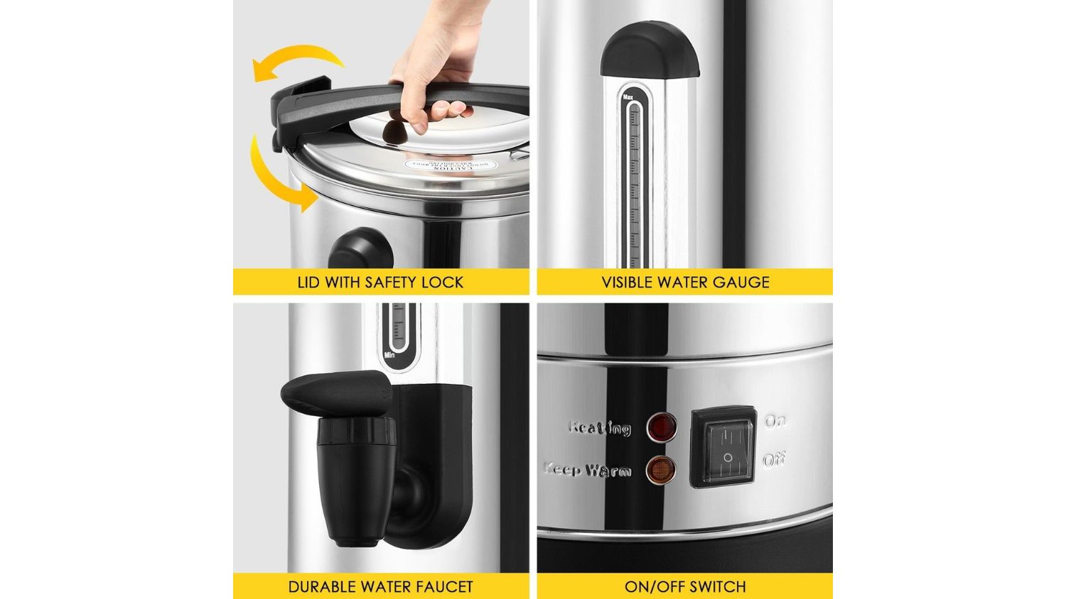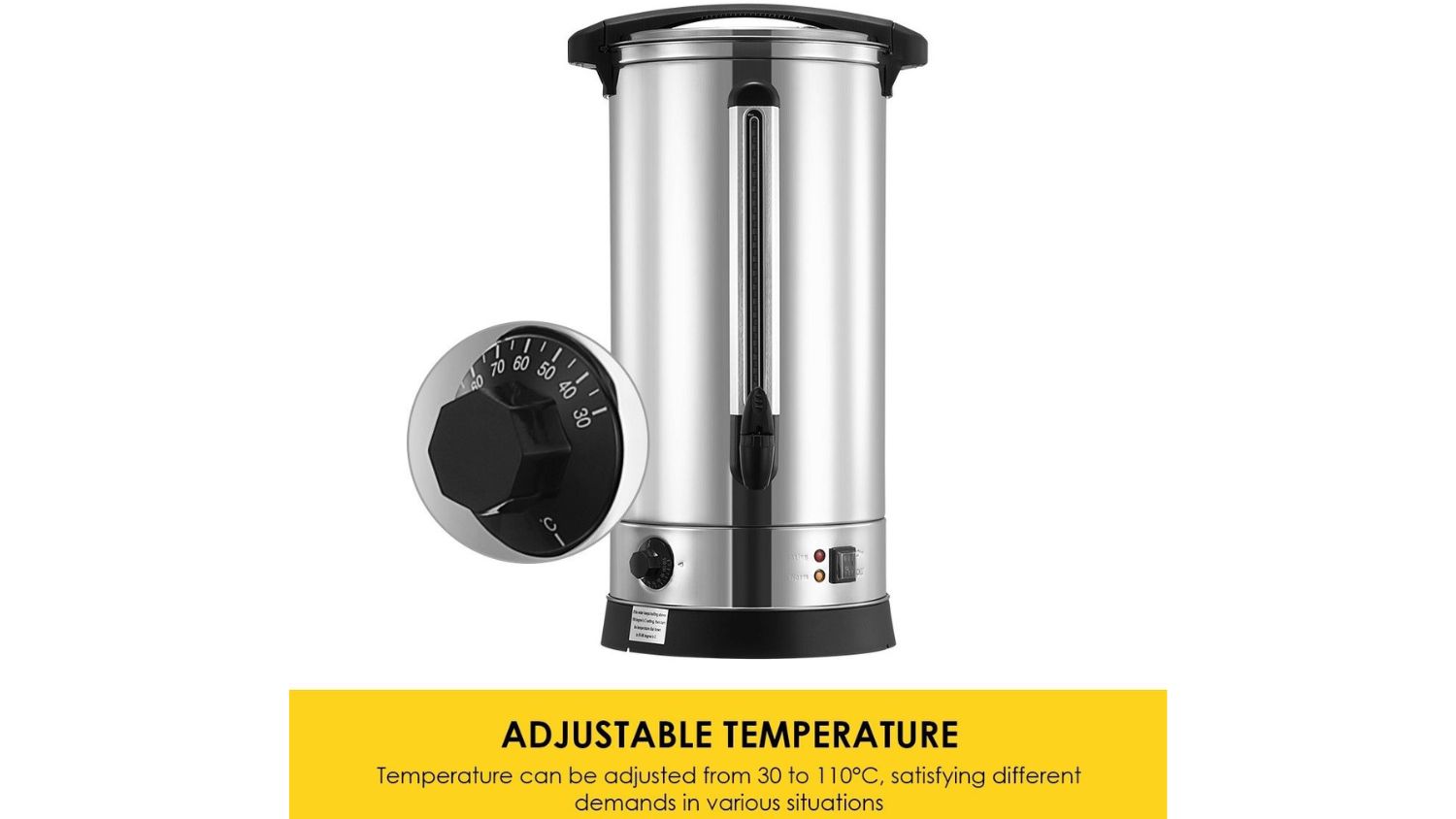 Enjoy hassle‑free access to warm or hot drinks with the Maxkon 28L Stainless Water Urn. Designed for big families and frequent entertainers, this container packs a generous 28L capacity and outstanding insulation thanks to its stainless-steel double-layer structure. From warm water at 30°C to a full boil at 110°C, you’re always in control. It also has built-in boil-dry protection, a transparent water gauge, heat‑resistant handles, and a sturdy PP + SS430 base.