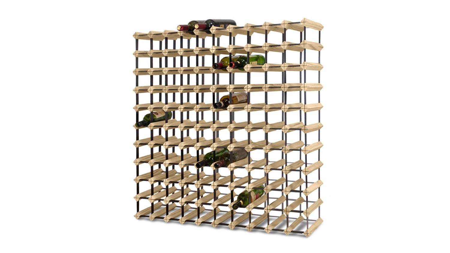 The TSB Living 110 Bottle Wire & Wood Wine Rack is the perfect way to add a touch of sophistication to your home décor. This elegant wine rack is made from sustainable pine wood and galvanised iron that will complement any interior. Its ability to hold up to 110 bottles of wine is also a great way to keep your collection organised and within reach.