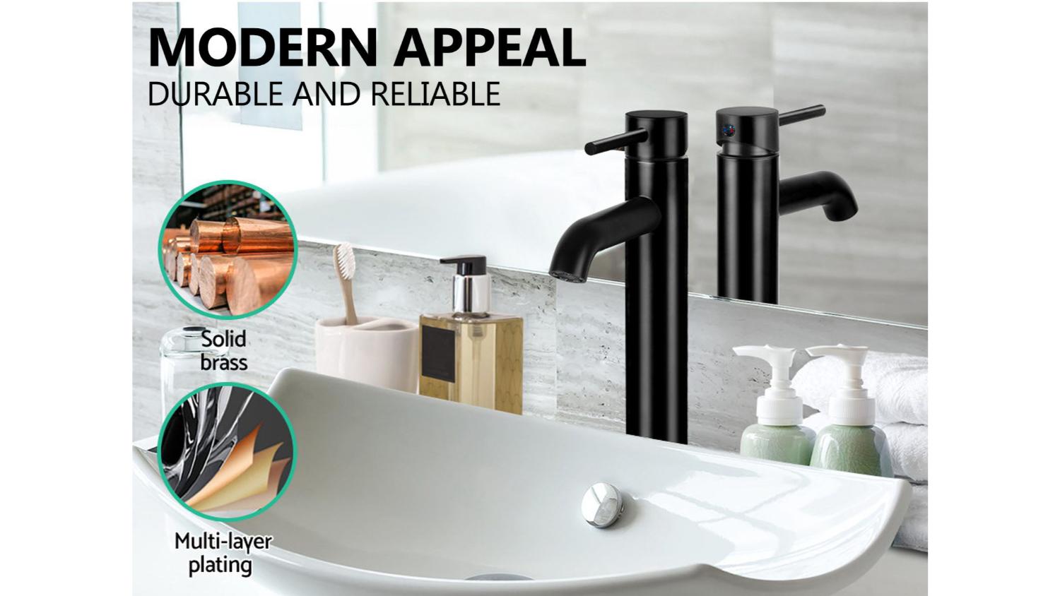 TSB Living Modern Mixer Tap with Engraved Hot & Cold Indicators 32 x 14cm - Black