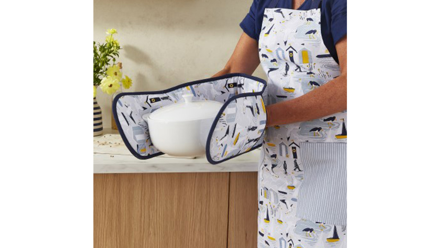 Make your cooking experience safe and chic with the Ulster Weavers Seashore Double Oven Glove. Made from durable 100% cotton with a coastal print design and contrast piping, this glove includes thick, protective wadding to keep your hands safe. It’s also designed with a hang loop for effortless accessibility.