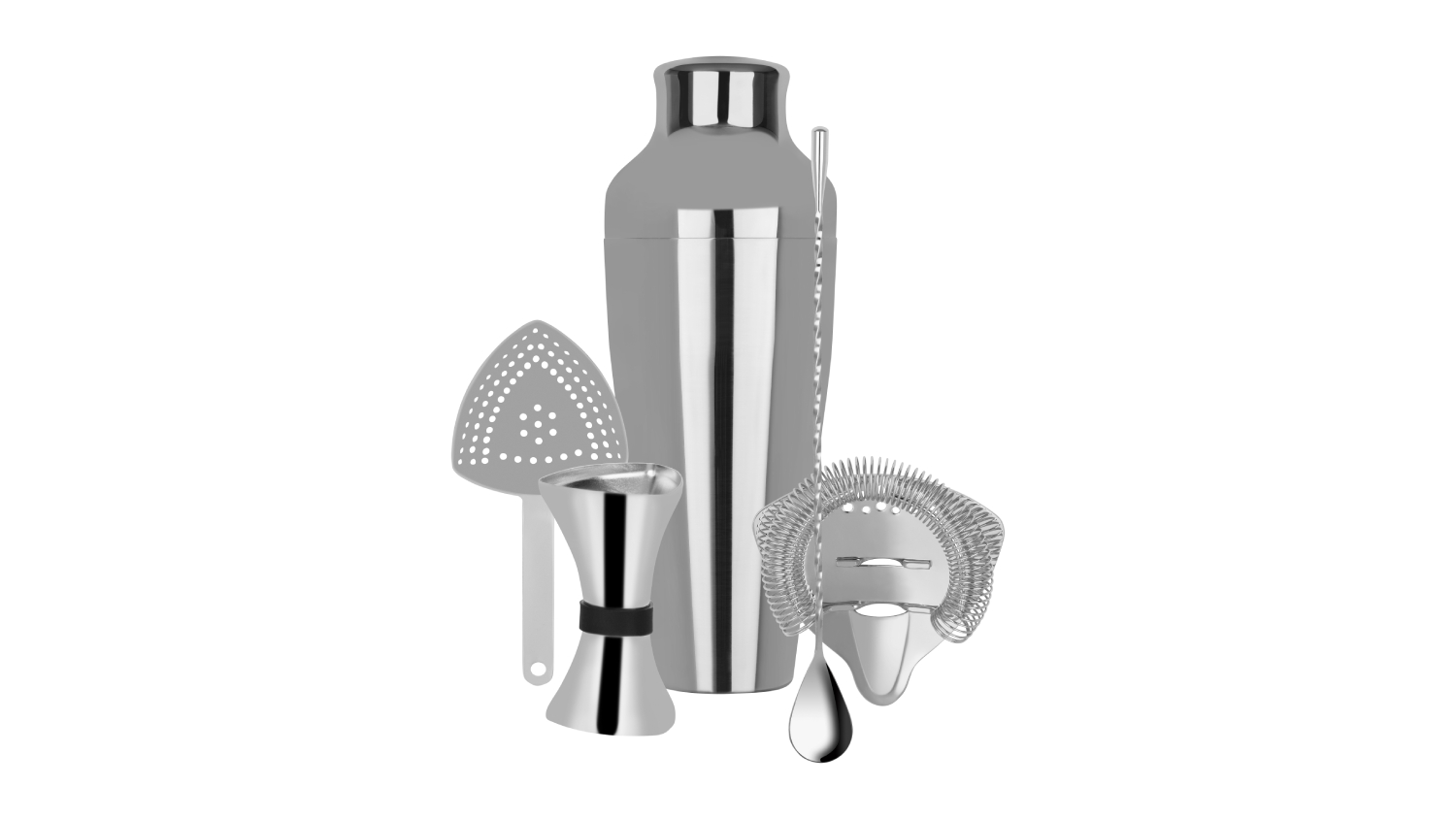 Create perfect mixed drinks every time with the Zanzi Cocktail Set! Crafted from durable 18/8 stainless steel, this 5-piece set includes a pro-jigger, teardrop bar spoon, pro-strain cocktail strainer, tri-julep strainer, and a sleek Parisian shaker. Its practical design and sleek mirror polish make it a must-have for any home or bar.