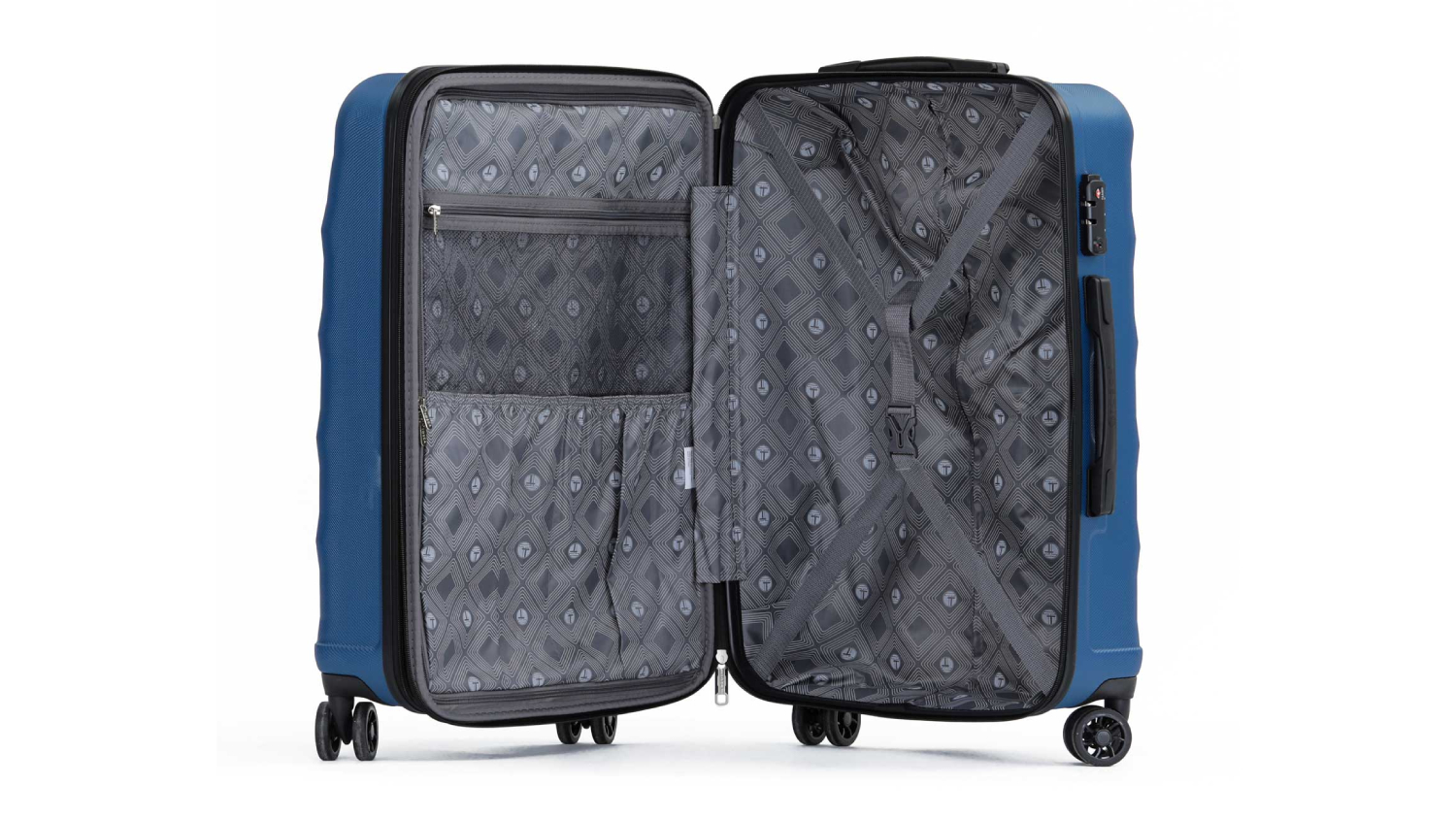 Travel smart with the Tosca Bahamas Hardshell Suitcase! Designed for the modern traveller, this suitcase combines style and functionality with a sleek embossed pentagon design and a durable ABS-polycarbonate shell. Stay organised with interior dividers, packing straps, and multiple pockets, while the TSA lock ensures security.