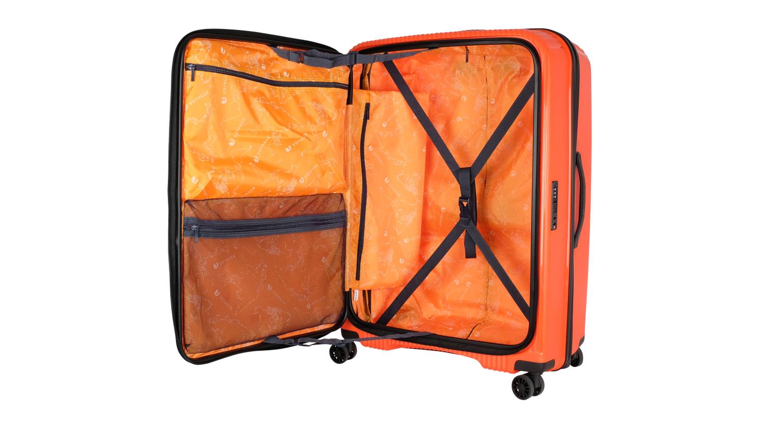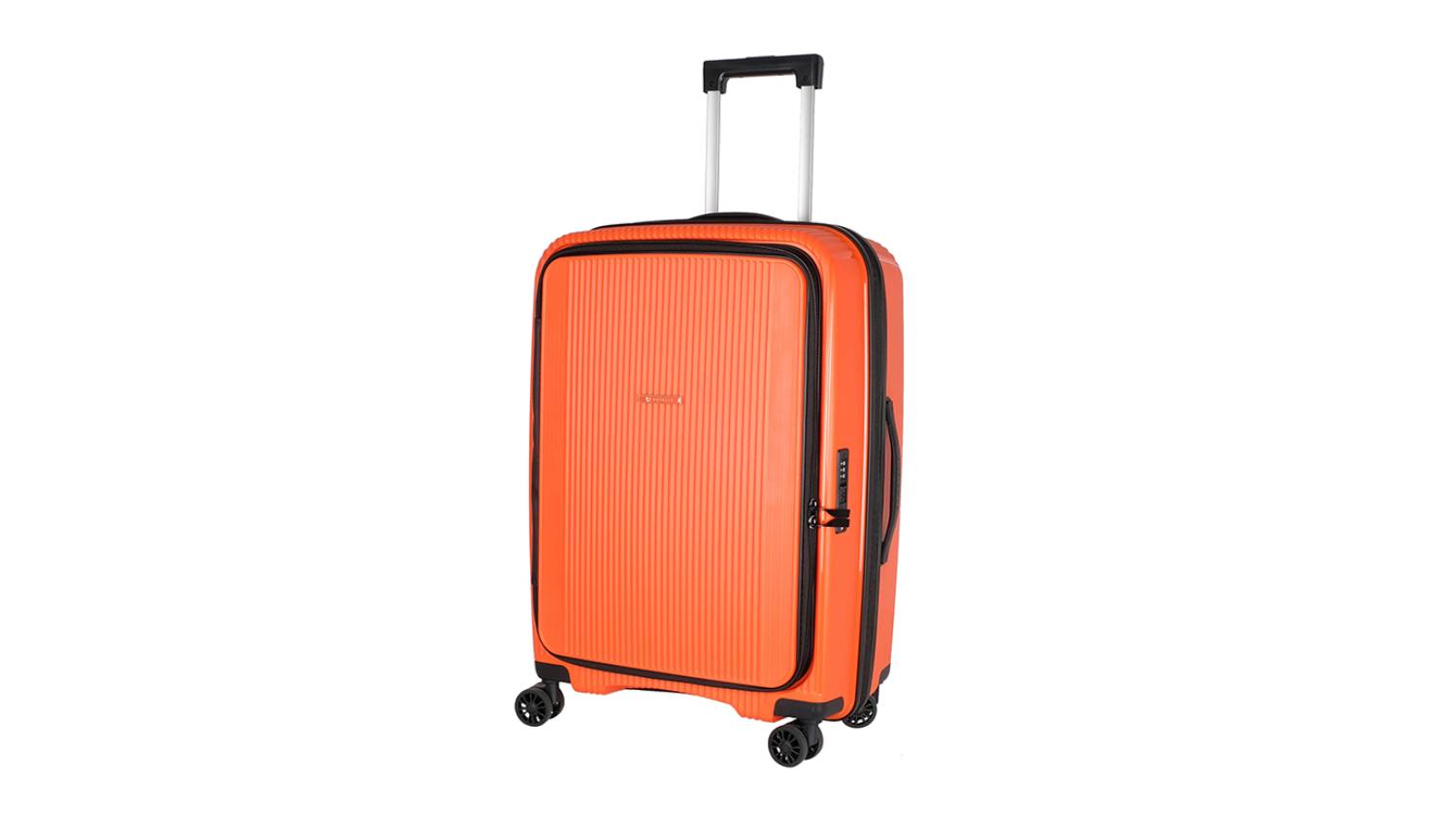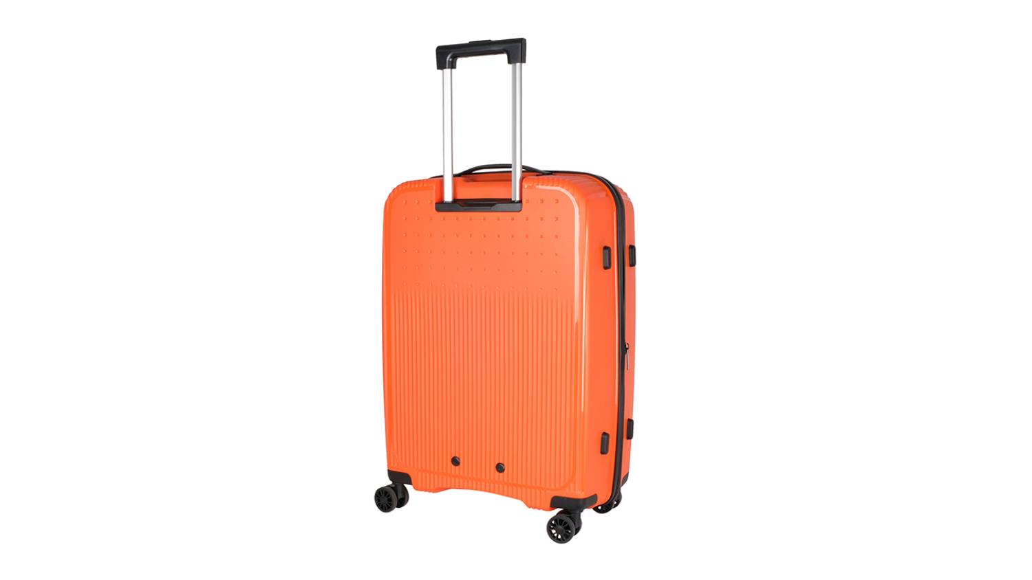 Travel effortlessly with the Voyager Montreal Hard Luggage Case. Built from durable polypropylene, this luggage glides smoothly on four dual-spinner wheels. Its top-opening lid offers easy access to your belongings. Plus, its lightweight build is ideal for tight spaces like cruise cabins and small hotel rooms.