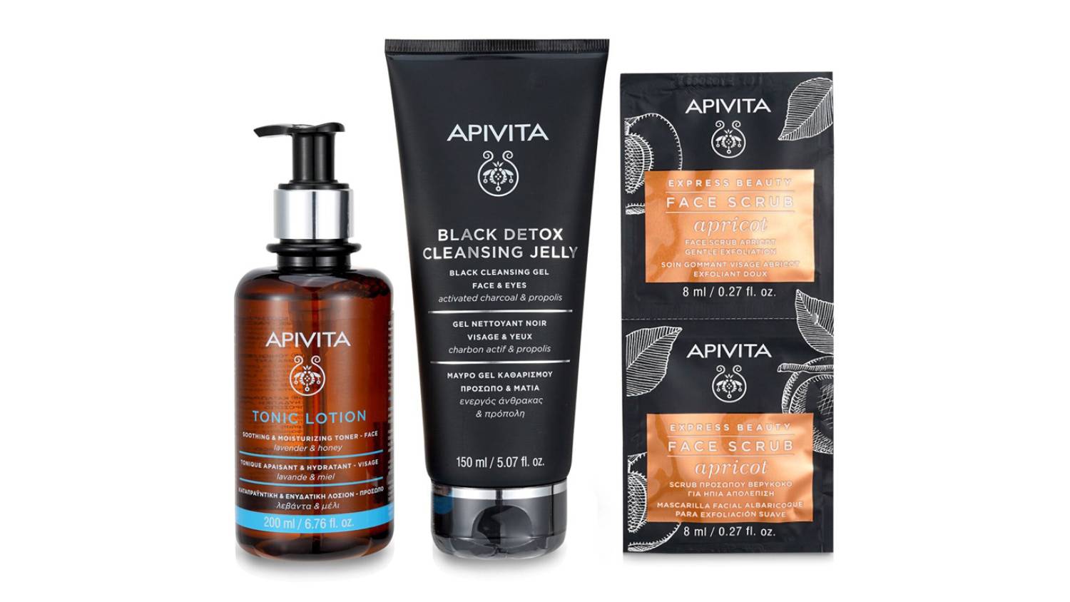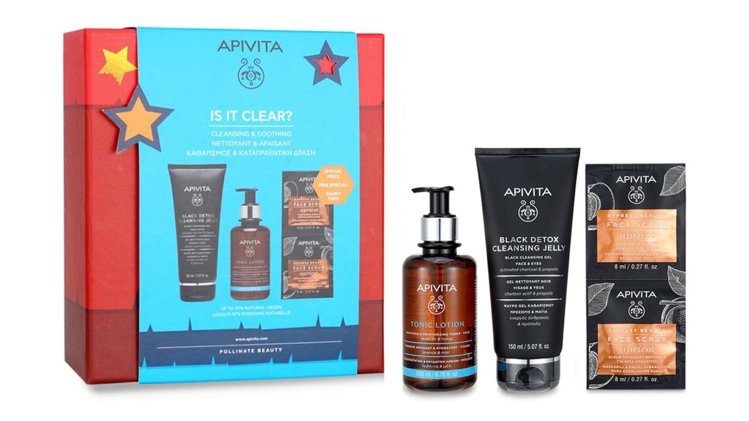 Treat your skin to Apivita’s Is It Clear? Cleansing and Soothing Set. This 3-piece bundle includes a detoxifying Cleansing Jelly, a soothing Tonic Lotion with Lavender and Honey, and a gentle Apricot Face Scrub. A perfect skincare essential or gift for glowing, refreshed skin.