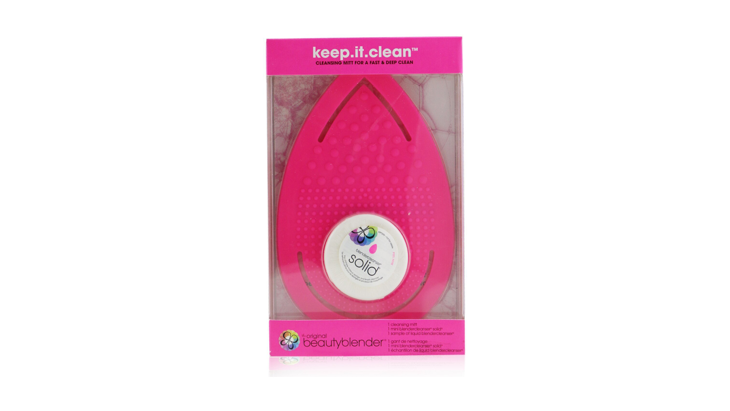 Keep your makeup tools sparkling clean on the go with BeautyBlender Keep It Clean! This travel-friendly duo includes a gentle silicone cleansing mitt and a mini Blendcleanser solid, keeping your BeautyBlenders and brushes in top condition. It’s also infused with a soothing lavender fragrance.