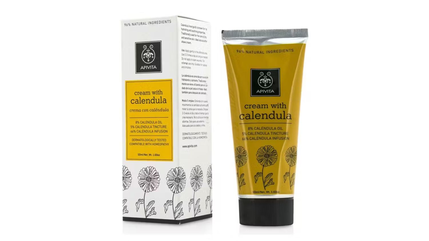 Experience the gentle relief offered by the Apivita Cream With Calendula 50ml/1.69oz. Enriched with a powerful blend of calendula extracts, this herbal cream soothes and hydrates dry, sensitive skin while calming mild irritations and rashes. It is dermatologically tested and suitable for the delicate skin of babies and children.