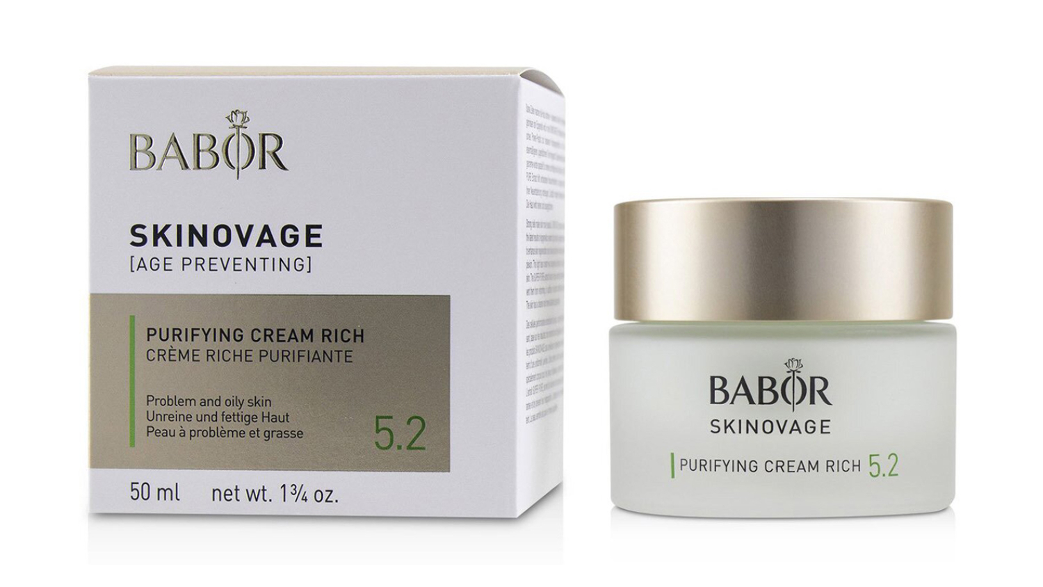 ![Babor Skinovage [Age Preventing] Purifying Cream Rich 5.2 - For Problem & Oily Skin - 50ml/1.7oz Babor Skinovage [Age Preventing] Purifying Cream Rich 5.2 - For Problem & Oily Skin - 50ml/1.7oz](http://hnsfpau.imgix.net/5/images/detailed/384/232012_2.jpg?fit=fill&bg=0FFF&w=60&h=33&auto=format,compress)