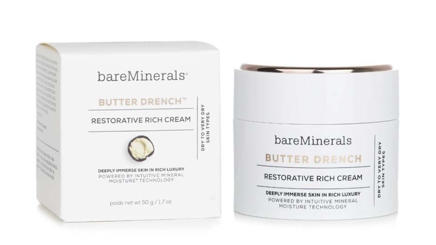 Give your skin the ultimate moisture boost with BareMinerals Butter Drench Restorative Rich Cream. This formula combines shea butter, peptides, and ceramides to restore softness, reduce fine lines, and eliminate roughness. Dermatologist-tested and non-comedogenic, it’s perfect for dry to very dry skin.
