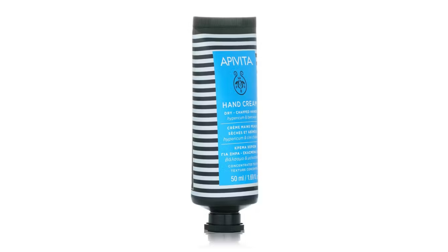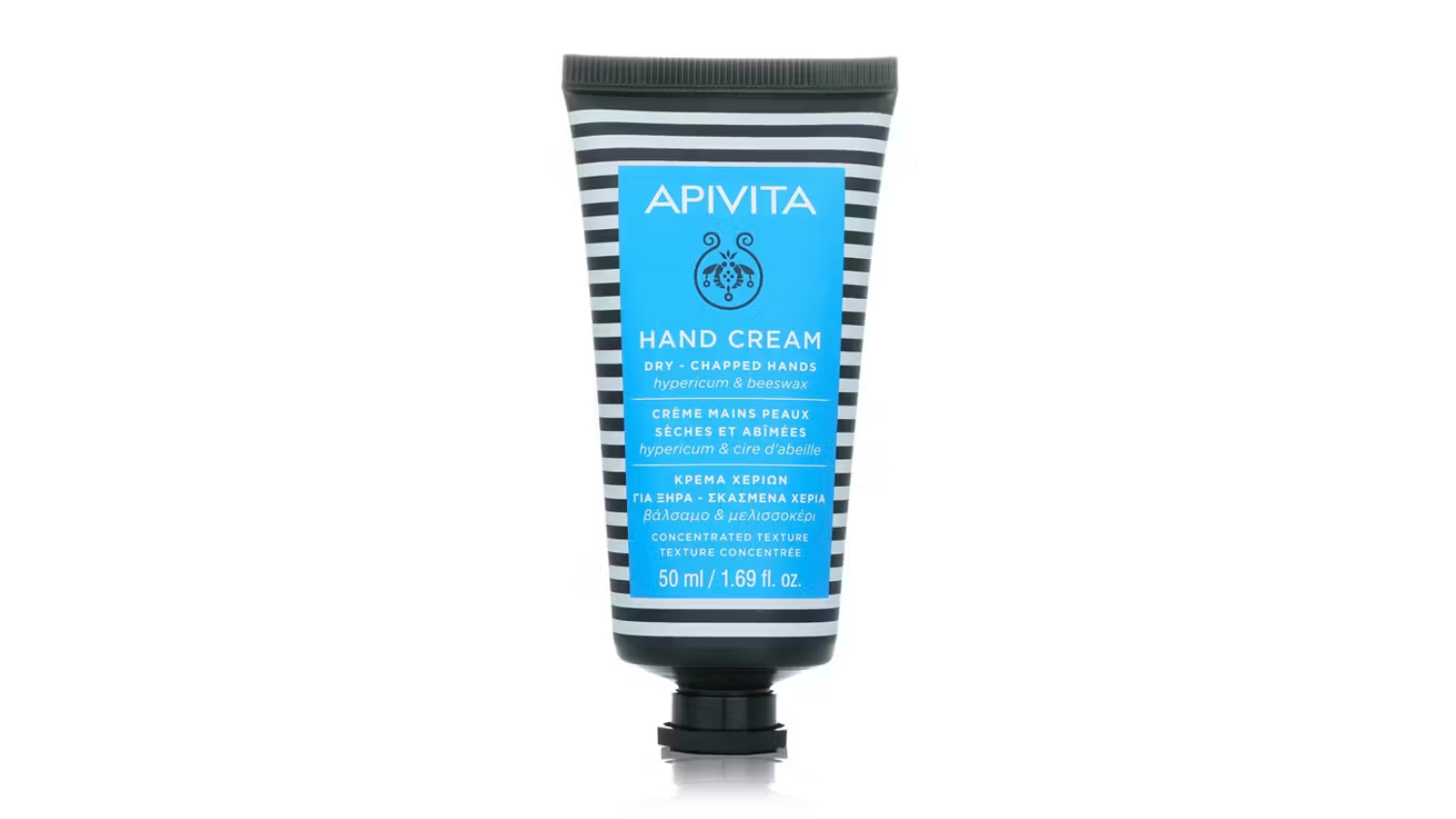 Treat your hands to the nourishing power of Apivita Dry-Chapped Hands Hand Cream with Hypericum and Beeswax Concentrated Texture 50ml/1.75oz. This rich, repairing cream heals dry, cracked skin and soothes discomfort. Enhanced with lavender extract, shea butter, and vitamins E plus A, it improves texture and restores hydration.