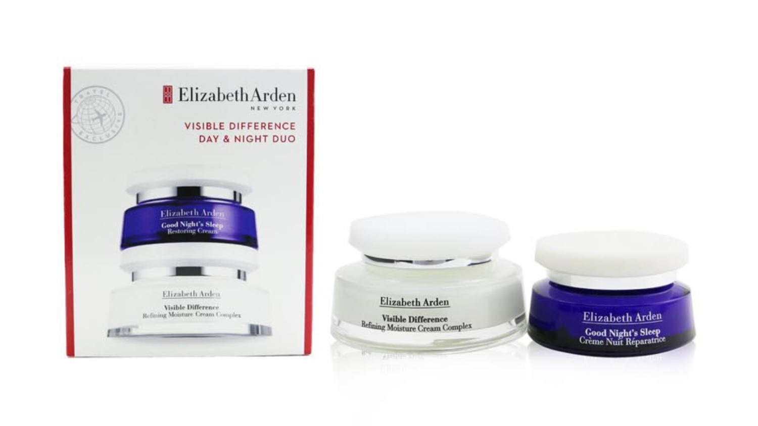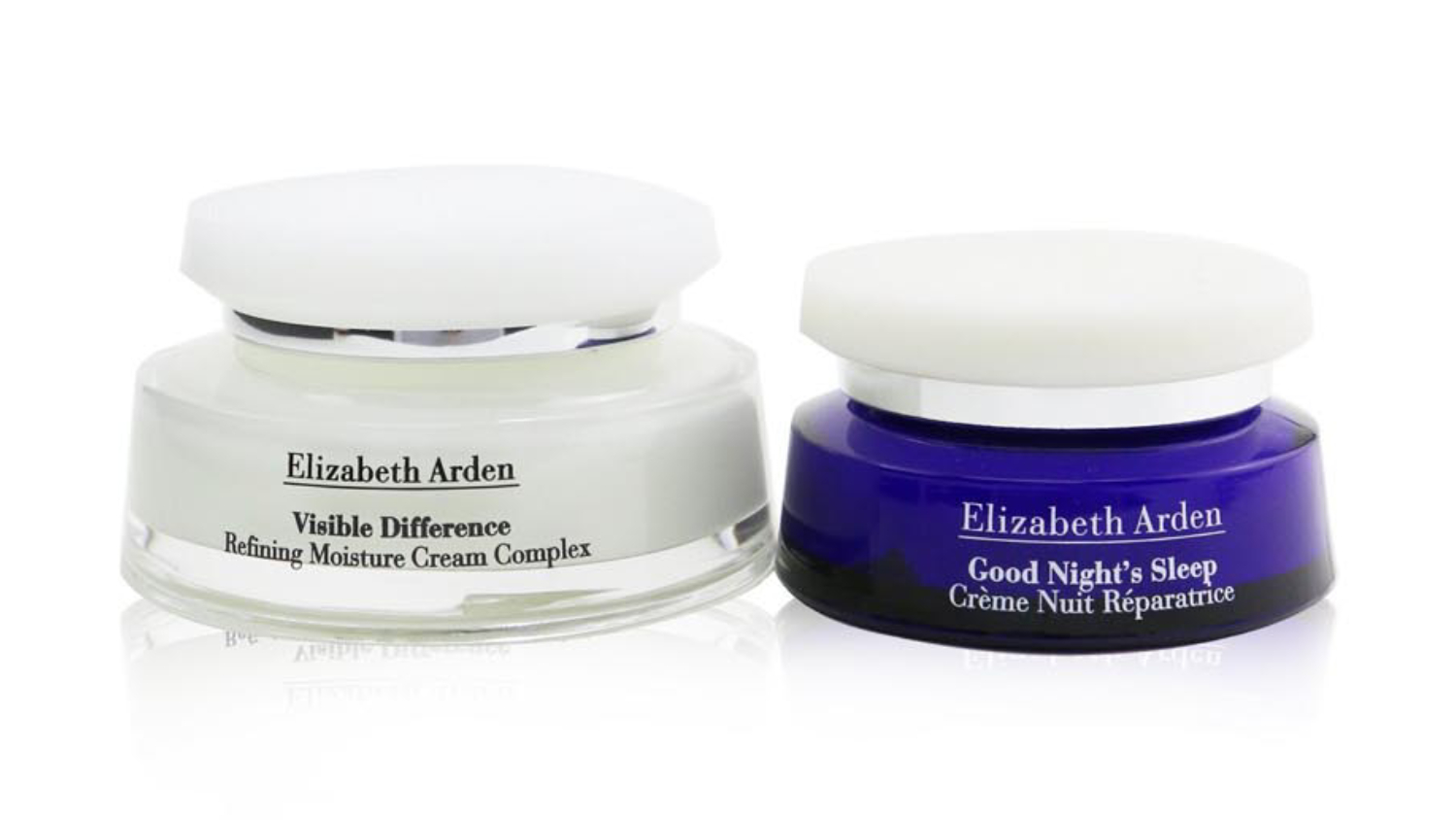 Give your skin the ultimate hydration boost with the Elizabeth Arden Visible Difference Day & Night Duo: Refining Moisture Cream Complex. The Refining Moisture Cream Complex provides all-day moisture, leaving skin smooth and radiant, while the Good Night’s Sleep Restoring Cream deeply nourishes and repairs overnight. Infused with calming botanicals and a dreamy lavender-honeysuckle scent, this duo ensures your skin is refreshed and revitalised every morning!