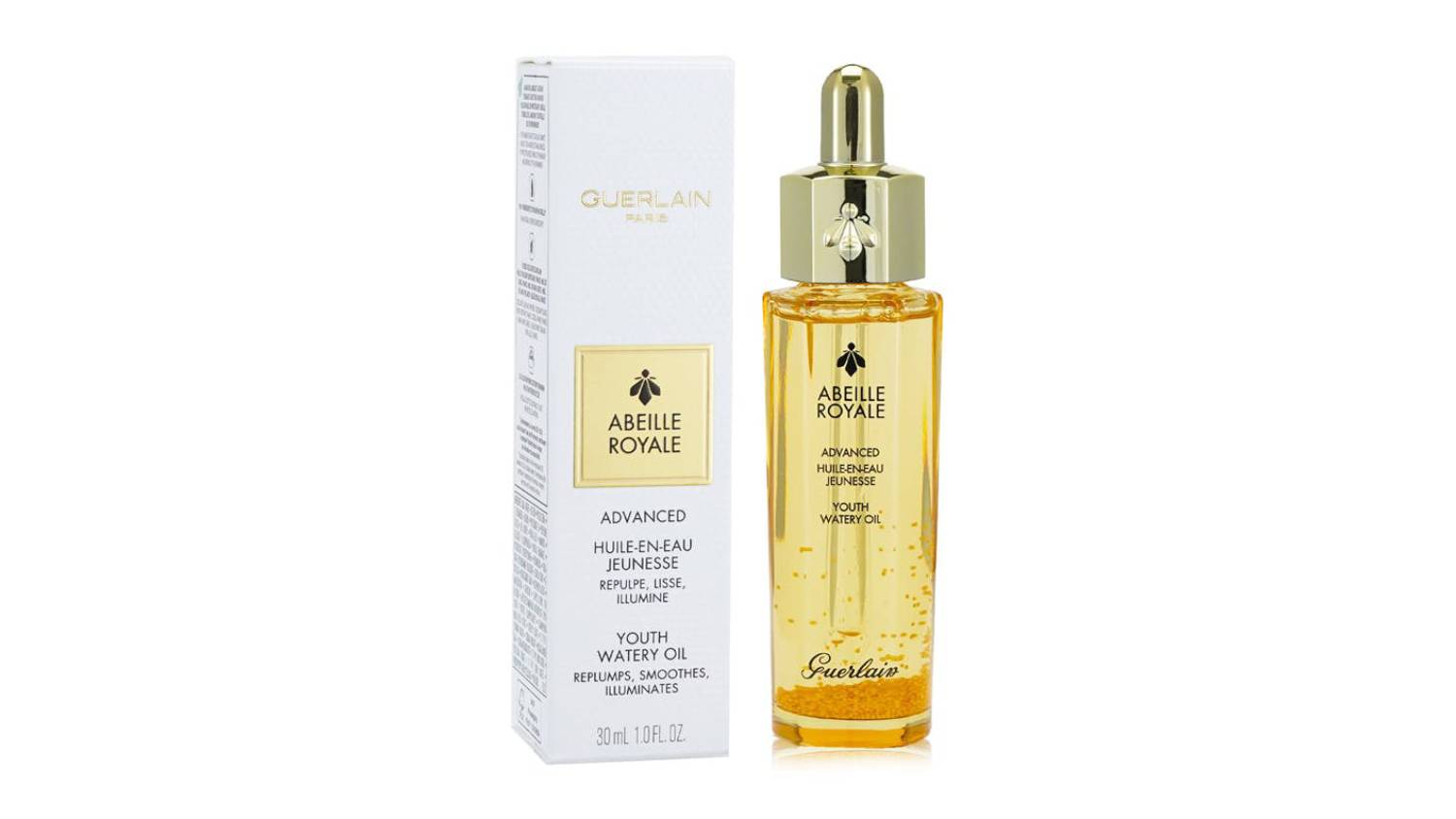 Get ready to glow with the Guerlain Abeille Royale Advanced Youth Watery Oil. This luxurious facial treatment boasts a unique texture, blending the richness of an oil, the light feel of a lotion, and the power of a serum. Powered by Dynamic BlackBee Repair technology, it leaves your skin firmer, softer, and more radiant.