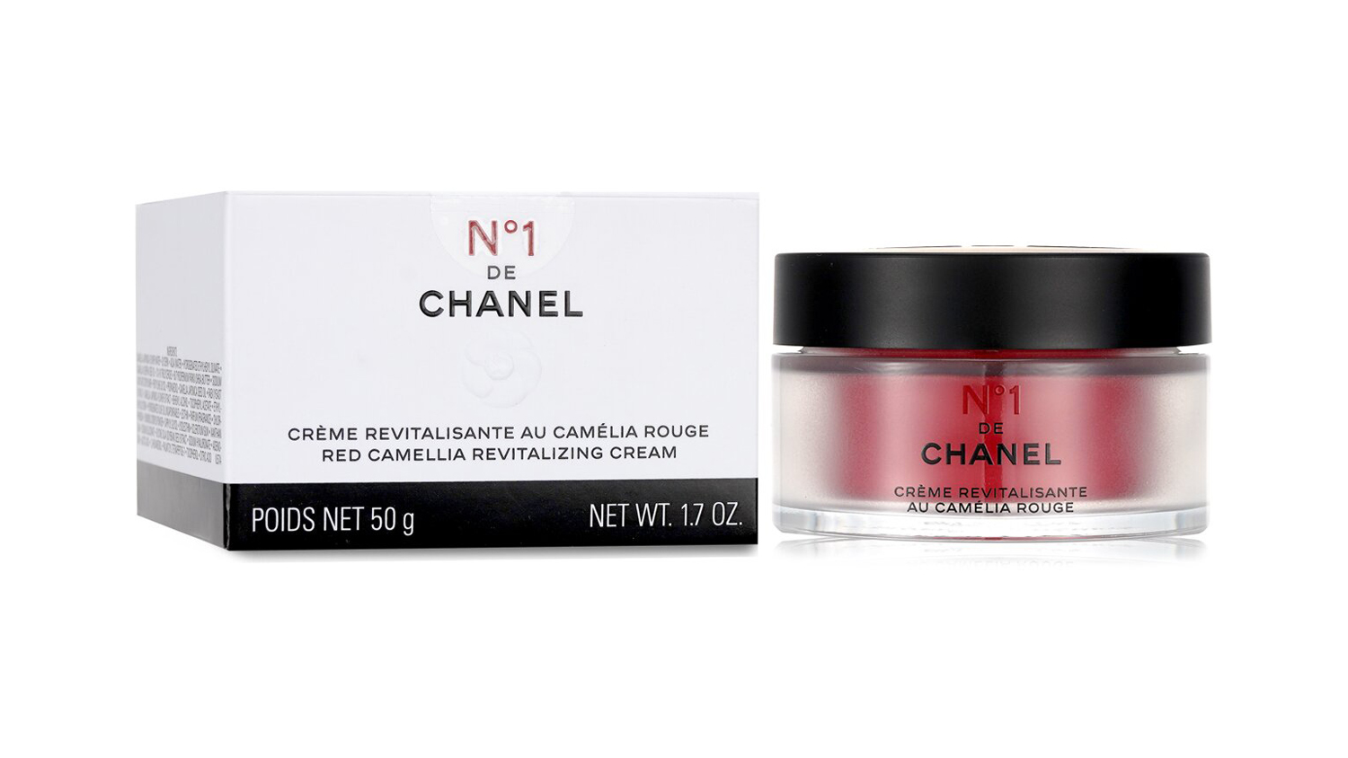 Unlock youthful radiance with the Chanel N°1 De Chanel Red Camellia Revitalizing Cream. This velvety, 95% natural cream is infused with red camellia and camellia water, protecting against pollution and reducing wrinkles. Experience softer, smoother skin with refined pores and a vibrant glow!