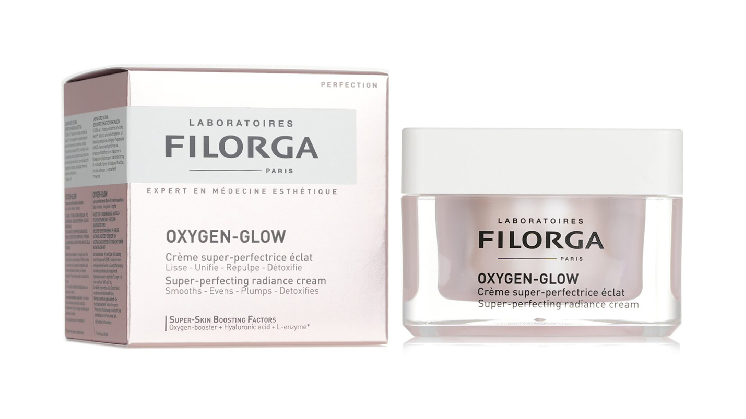 Achieve a flawless, radiant complexion with the Filorga Oxygen-Glow Super-Perfecting Radiance Cream. Made to help energise your skin, this skin-perfecting cream uses a Super-Skin Boosting Factors complex with an oxygenation booster. It is also packed with plumping Hyaluronic Acid and a detoxifying L-enzyme, plus a colour-evening peptide for a refining effect.
