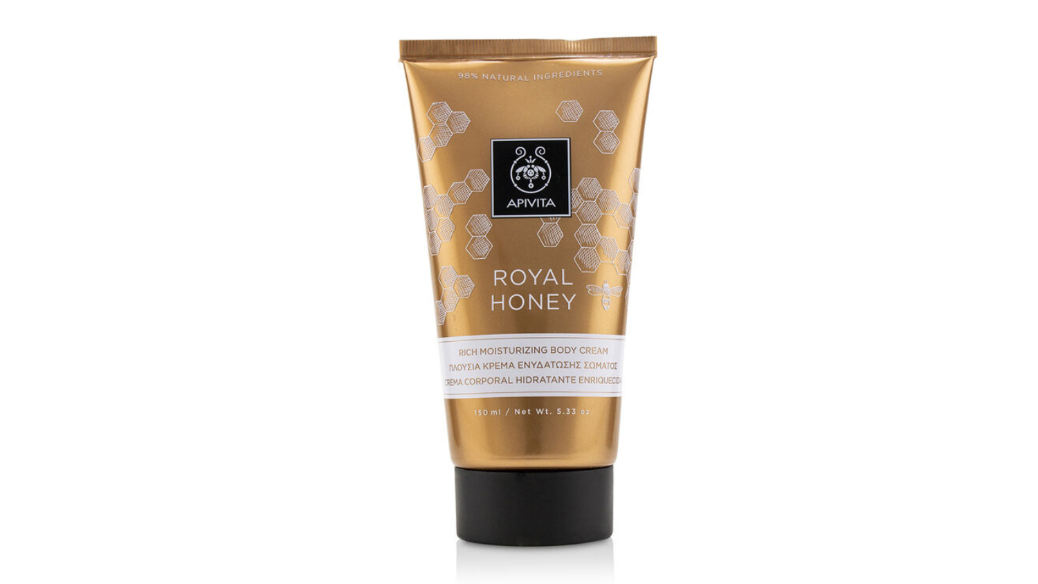 Indulge your skin with the luxurious Apivita Royal Honey Rich Moisturising Body Cream 150ml/5.33oz. Infused with Greek thyme honey and sodium hyaluronate, this product deeply moisturises and nourishes the skin. Blended with olive oil, almond oil, shea butter, and cocoa butter, it provides lasting hydration while Greek mountain tea offers antioxidant properties.