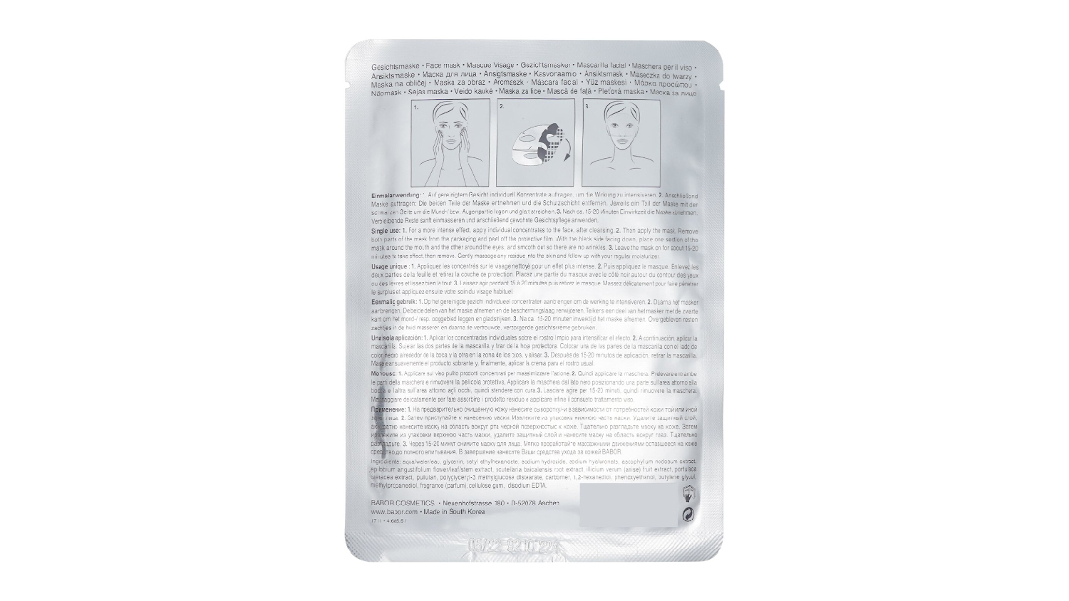 Give your skin an instant lift and hydration boost with the Doctor Babor Lifting Rx Silver Foil Face Mask 4pcs. Infused with Hyaluronic Acid, this advanced mask plumps the skin, smooths fine lines, and strengthens the skin barrier for a dewier and more youthful look.