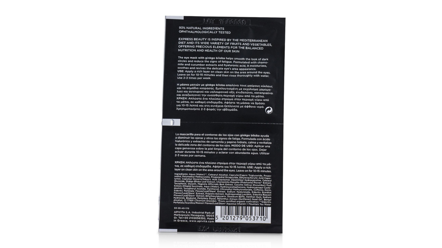 Say goodbye to tired-looking eyes with the Apivita Express Beauty Eye Mask with Ginkgo Biloba! This natural anti-fatigue eye mask is the ultimate solution for banishing dark circles and puffiness around your delicate eye area. Infused with the power of ginkgo biloba extract, this mask revitalises tired eyes, giving them a brighter and younger look.