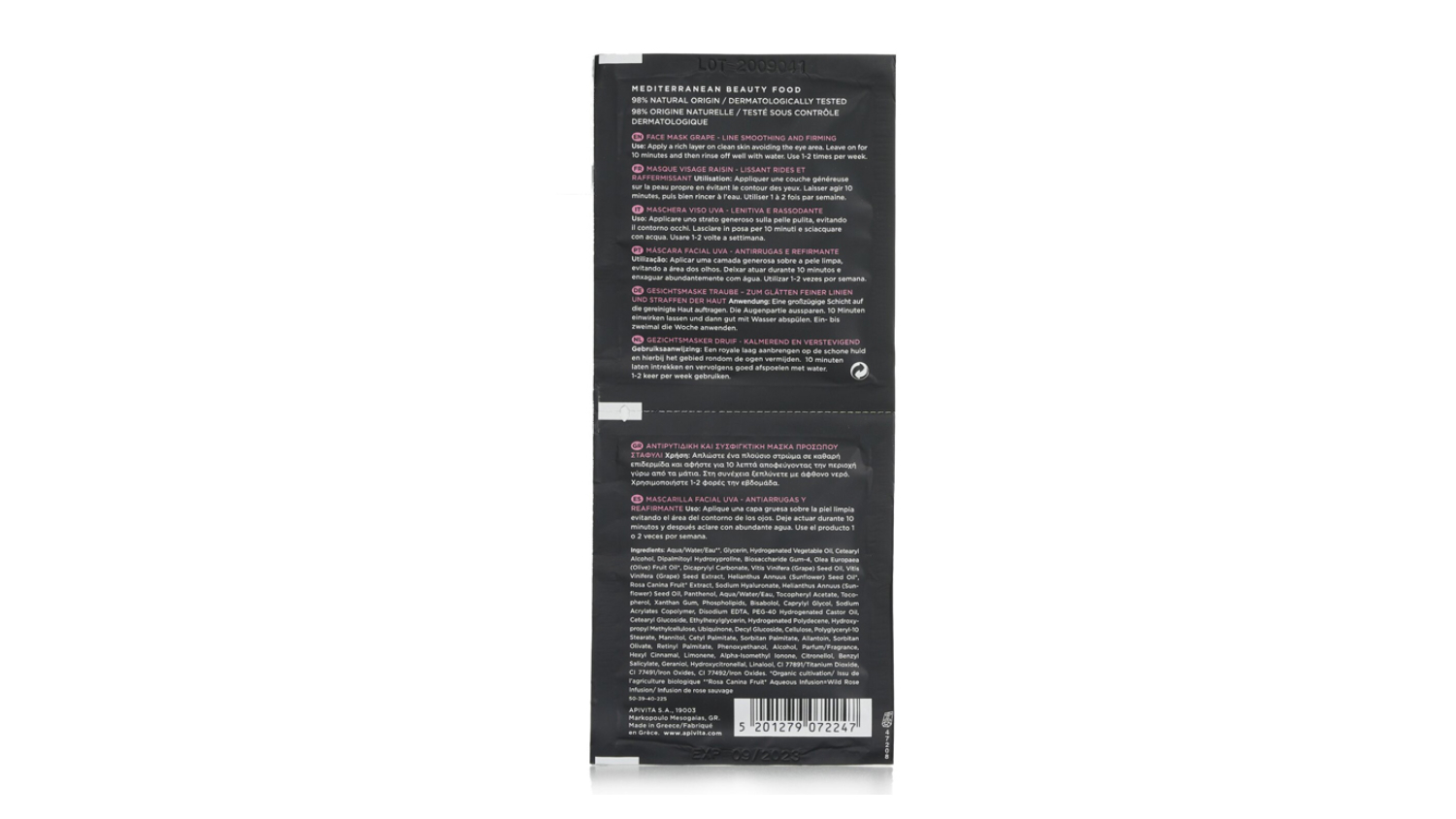 Indulge your skin for a youthful glow with our Apivita Express Beauty Face Mask with Grape (Line Smoothing and Firming)! This gentle facial mask is packed with 98% natural ingredients. It is also infused with grape oil that helps to reduce the appearance of wrinkles, improve skin elasticity, and moisturise your skin.
