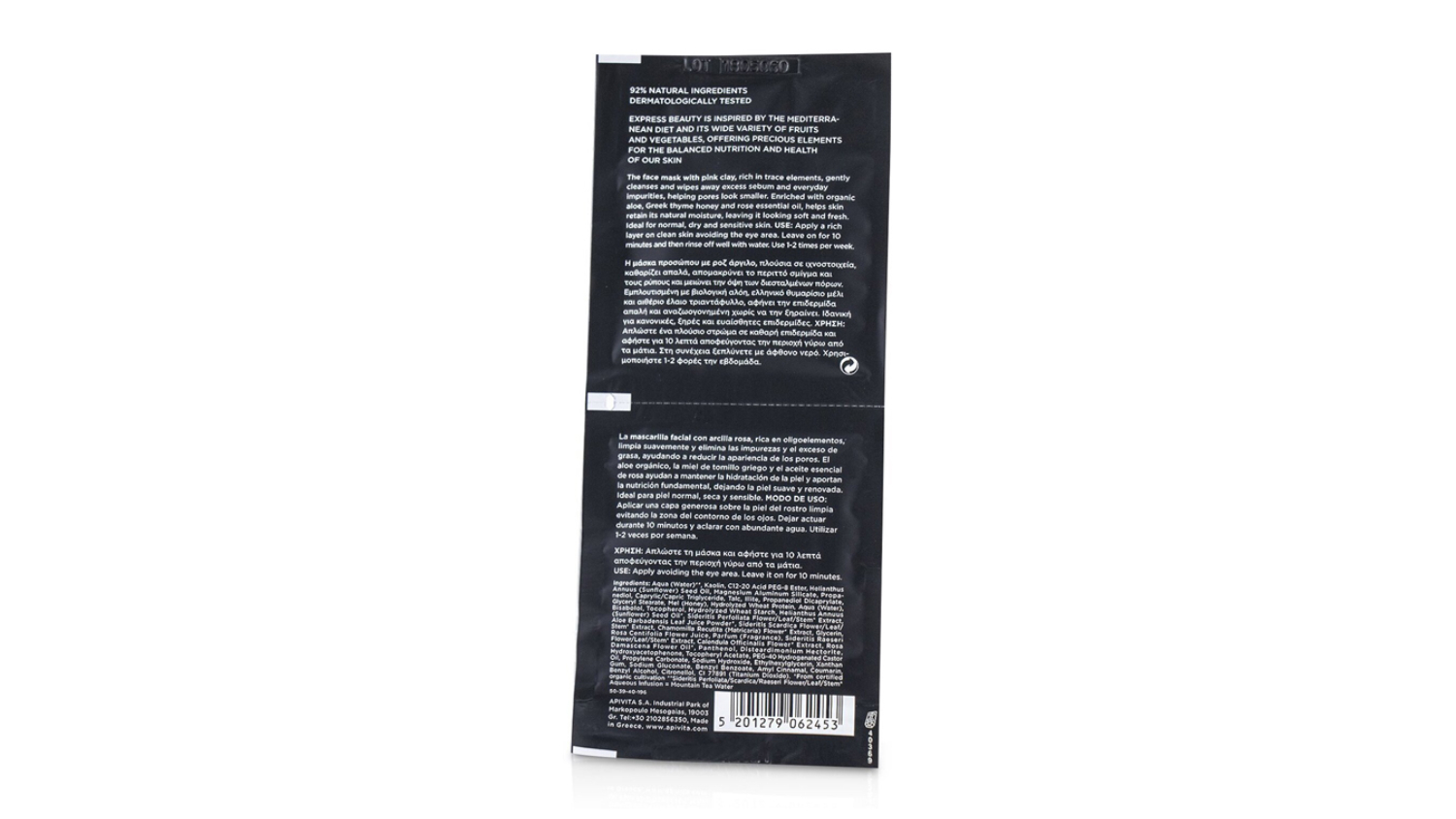 Pamper your skin with the Apivita Express Beauty Face Mask with Pink Clay (Gentle Cleansing). This mask is perfect for sensitive skin, formulated with 92% natural ingredients to reduce the appearance of pores.It is also infused with rose essential oil and dermatologically tested, leaving your skin feeling soft, smooth, and refreshed.