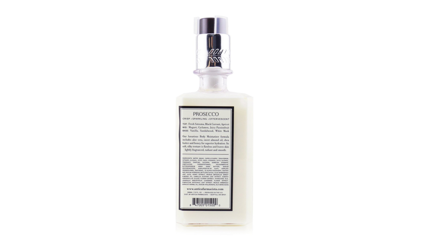 Indulge your skin with our luxurious Antica Farmacista Body Moisturiser (Prosecco). This subtly scented body moisturiser melts into your skin, providing superior hydration and a comfortable feel. Enriched with natural ingredients like aloe vera, apricot kernel oil, shea butter, and honey, it leaves your skin feeling soft, smooth, and radiant.