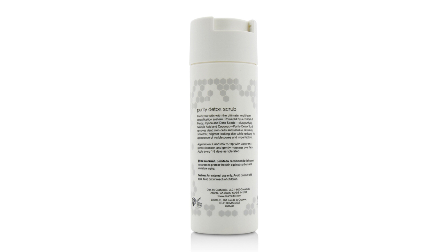 Give your skin the ultimate refresh with CosMedix Purity Detox Scrub! This unique formula blends exfoliators like Poppy, Jojoba, Date Seeds and Salicylic Acid, a powerhouse ingredient for skin cell renewal. It helps unclog pores, remove dullness, and leave your complexion feeling silky-smooth and luminous.