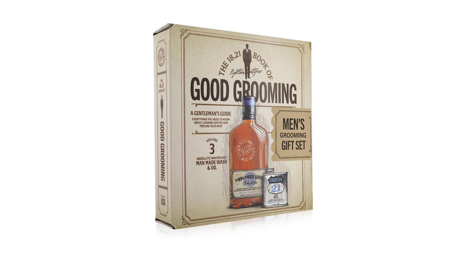 The 18.21 Man Made Book of Good Grooming Gift Set Volume 3: Absolute Mahogany (Wash 532ml + Oil 60ml) is the perfect present for any refined gentleman. This set includes a shampoo, conditioner, body wash, and beard oil, all infused with the captivating scent of mahogany. It's a great choice for personal use or as a thoughtful surprise.