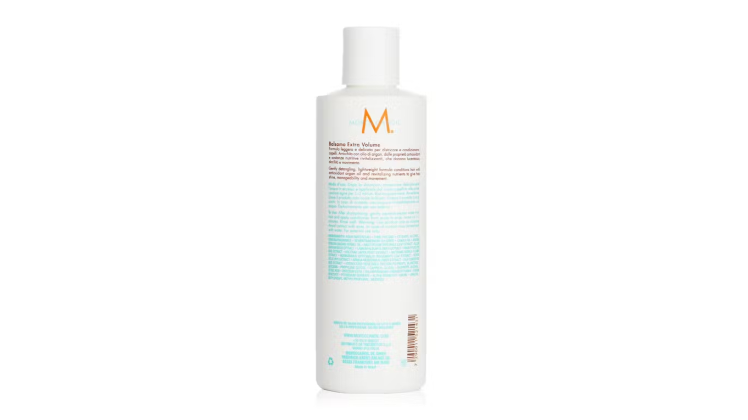 Give your fine hair a volume upgrade with the Moroccanoil Extra Volume Conditioner. This weightless, colour-safe formula uses Tilicine to plump strands from the inside, while Argan Oil and Keratin hydrate and shield strands. Expect soft, fuller-looking hair with enhanced shine and no heaviness.