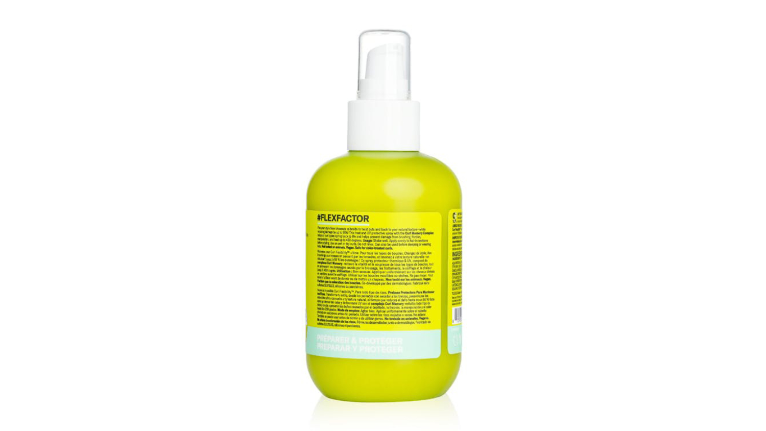 Meet the DevaCurl FlexFactor, the ultimate curl-protecting primer! Infused with our Curl Memory Complex, this product shields your hair from mechanical damage and heat styling for up to 450°. The Natural Guar also helps smooth, condition, and mend split ends. Plus, it helps all curl types spring back to life and prevent damage from brushing, friction, and manipulation.