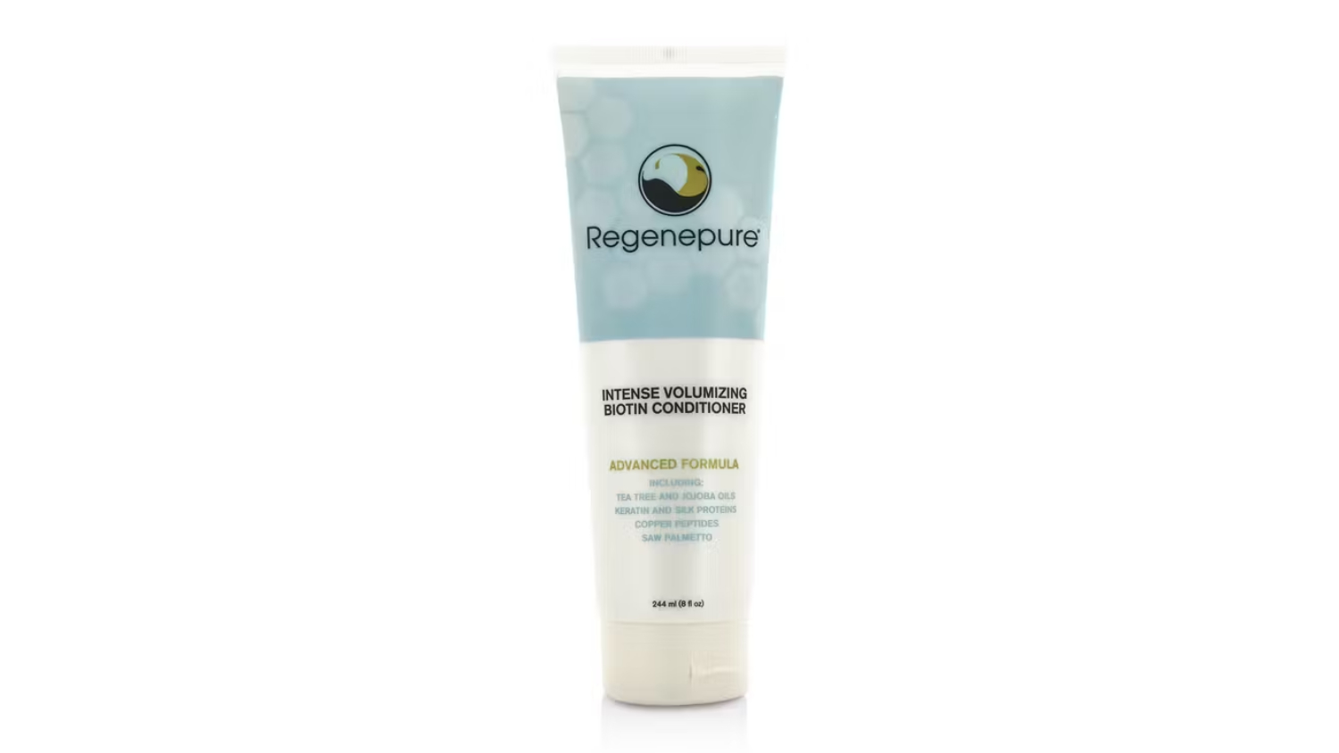 Get fuller, healthier-looking hair with the Regenepure Intense Volumising Biotin Conditioner. Packed with biotin, keratin, and nourishing oils, this powerhouse formula helps unclog follicles and restore volume to limp, brittle strands, leaving hair fuller, stronger, and healthier.