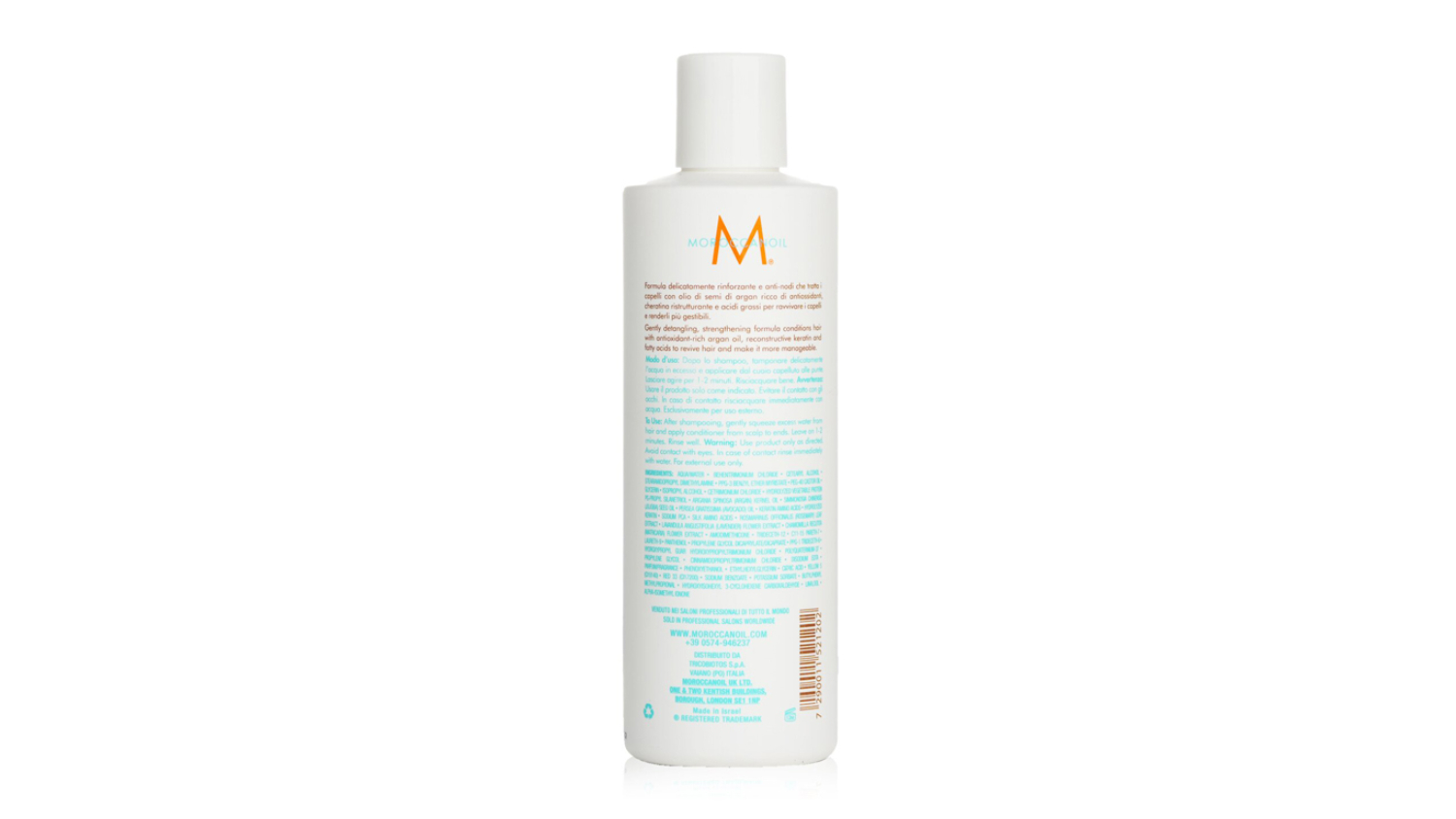 Weak or damaged hair? Recover and refresh with the Moroccanoil Moisture Repair Conditioner. This rich, creamy formula is infused with argan oil, keratin, fatty acids, and essential proteins. It gently detangles and deeply reconstructs, delivering supremely nourished and healthy hair. And yes, it's sulphate, phosphate, and paraben-free!