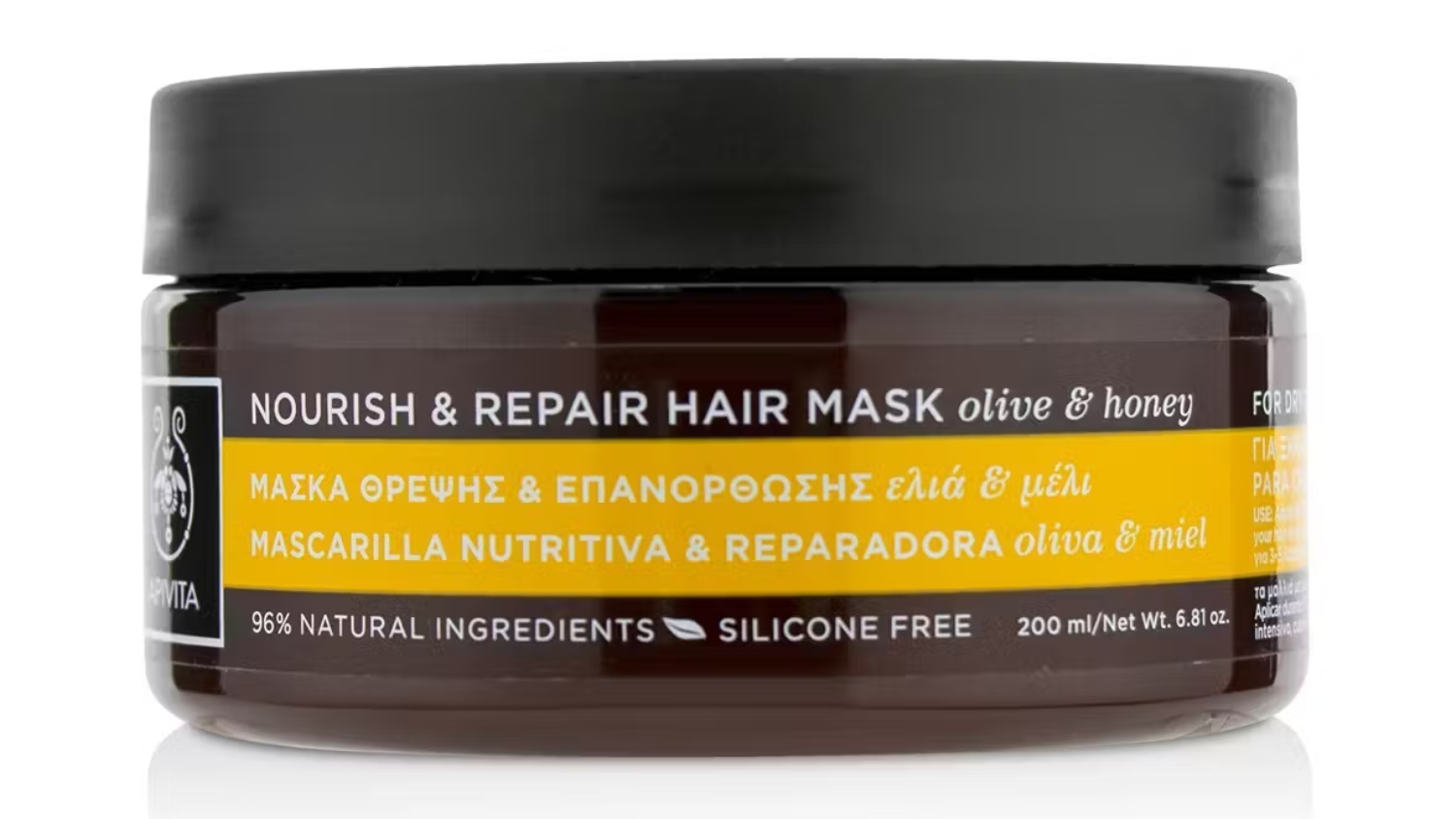 Pamper your hair with the nourishing power of the Apivita Nourish and Repair Hair Mask with Olive and Honey. Infused with olive, almond, and wheat oils, it delivers deep hydration to dry, damaged hair. A blend of aloe and honey also works to enhance your hair’s natural softness, leaving it smoother, shinier, and bouncier.