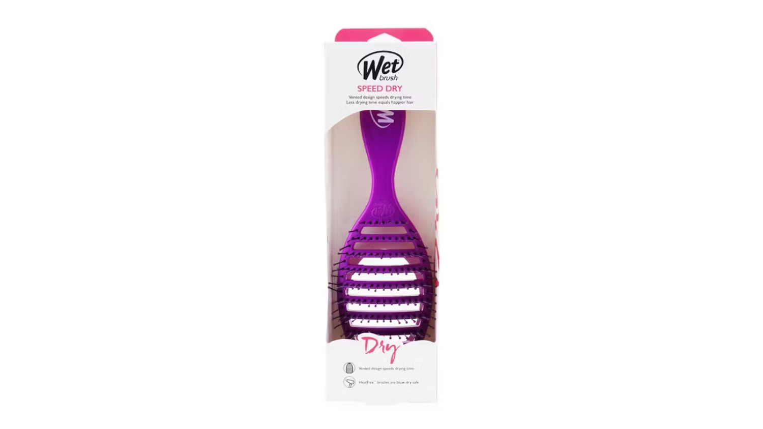 Quicken up your blow-dry routine with the Wet Brush Speed Dry Detangler! This brush features ultra-soft IntelliFlex bristles that glide effortlessly through tangles with ease. The vented design boosts drying, while the curved head contours your scalp. Plus, the ergonomic handle gives you complete control for a pain-free experience.