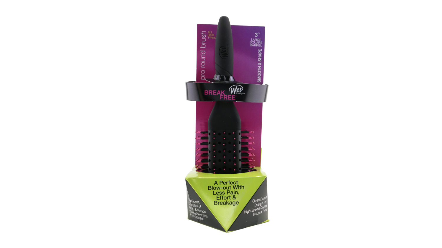 Fast-drying, flawless blowouts? Yes, please! The Wet Brush Pro Fast Dry Round Brush # 3" Square is a styling must-have for all hair types. Its HeatFlex™ bristles detangle gently, while the ultra-soft nylon bristles add shine. Plus, the Aero Technology™ open barrel design dries hair super fast by allowing maximum airflow.