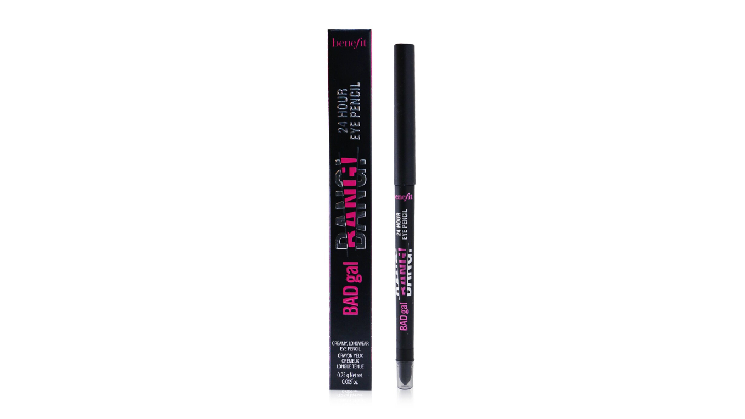 Achieve bold, captivating looks with the Benefit BADgal BANG! 24-Hour Eye Pencil. This creamy, waterproof formula glides on effortlessly, delivering a pitch-black colour that stays put all day and night. The automatic tip ensures precision, while the built-in smudger lets you create a smoky effect with ease.