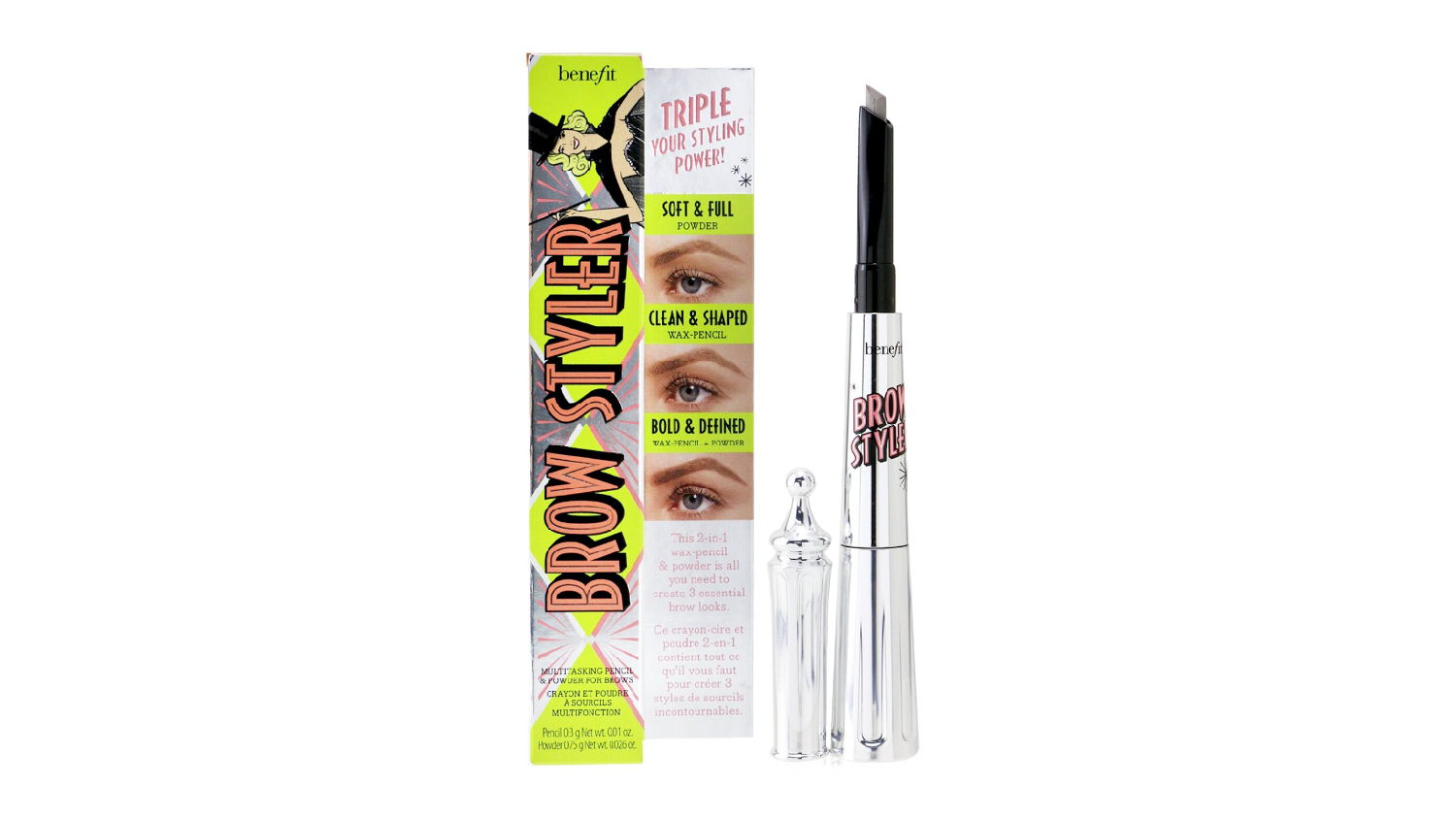 Shape, fill, and define your brows with the Benefit Brow Styler Multitasking Pencil & Powder in #2 Warm Golden Blonde. This dual-ended tool features a waterproof wax pencil for precise sculpting and a loose powder for soft, full brows. With 18-hour wear and a mess-free application, your perfect brows stay put all day.